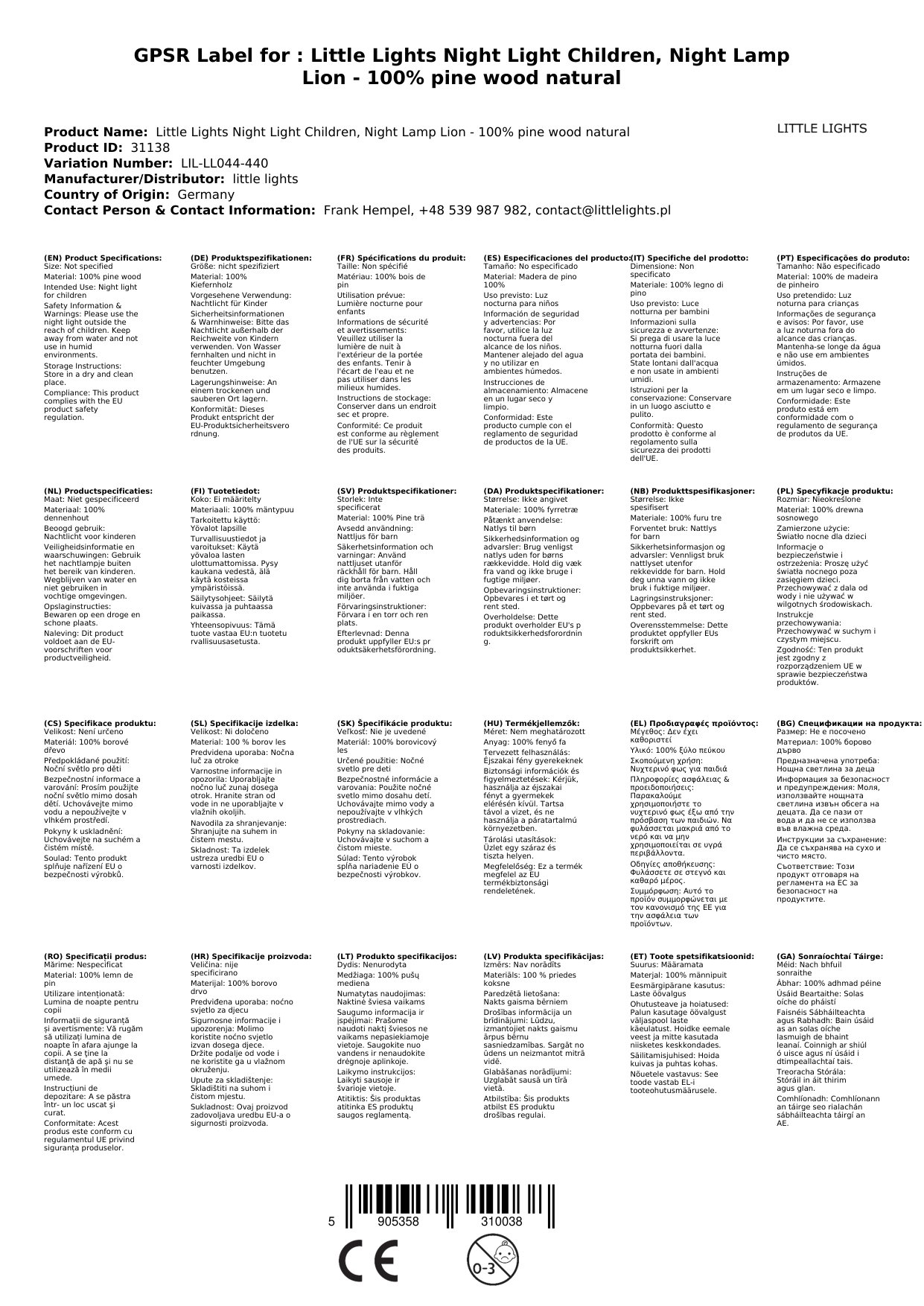 Stellen Sie eine Frage, um mehr über das Produkt zu erfahrenLittle Lights Nachtlicht Kinder, Nachtlampe Löwe - 100% Kiefernholz natur