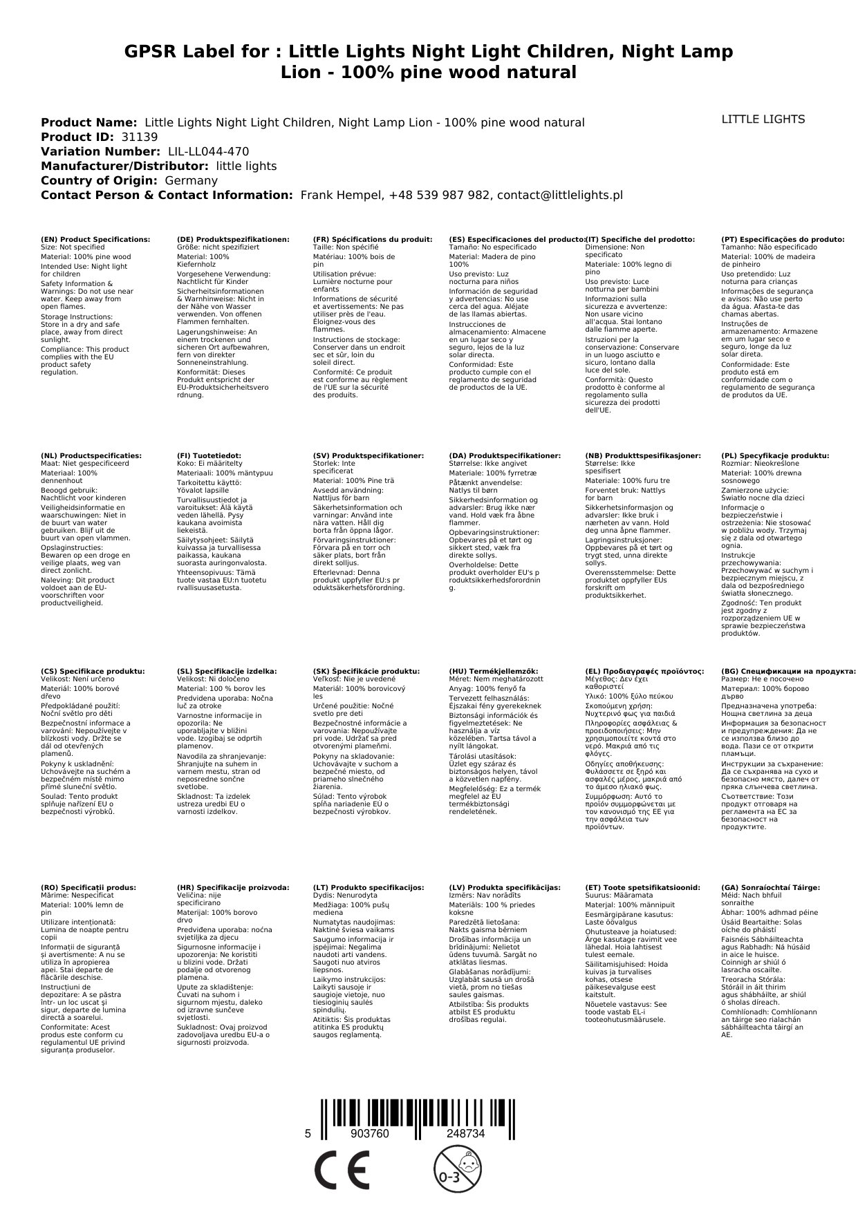 Stellen Sie eine Frage, um mehr über das Produkt zu erfahrenLittle Lights Nachtlicht Kinder, Nachtlampe Löwe - 100% Kiefernholz natur