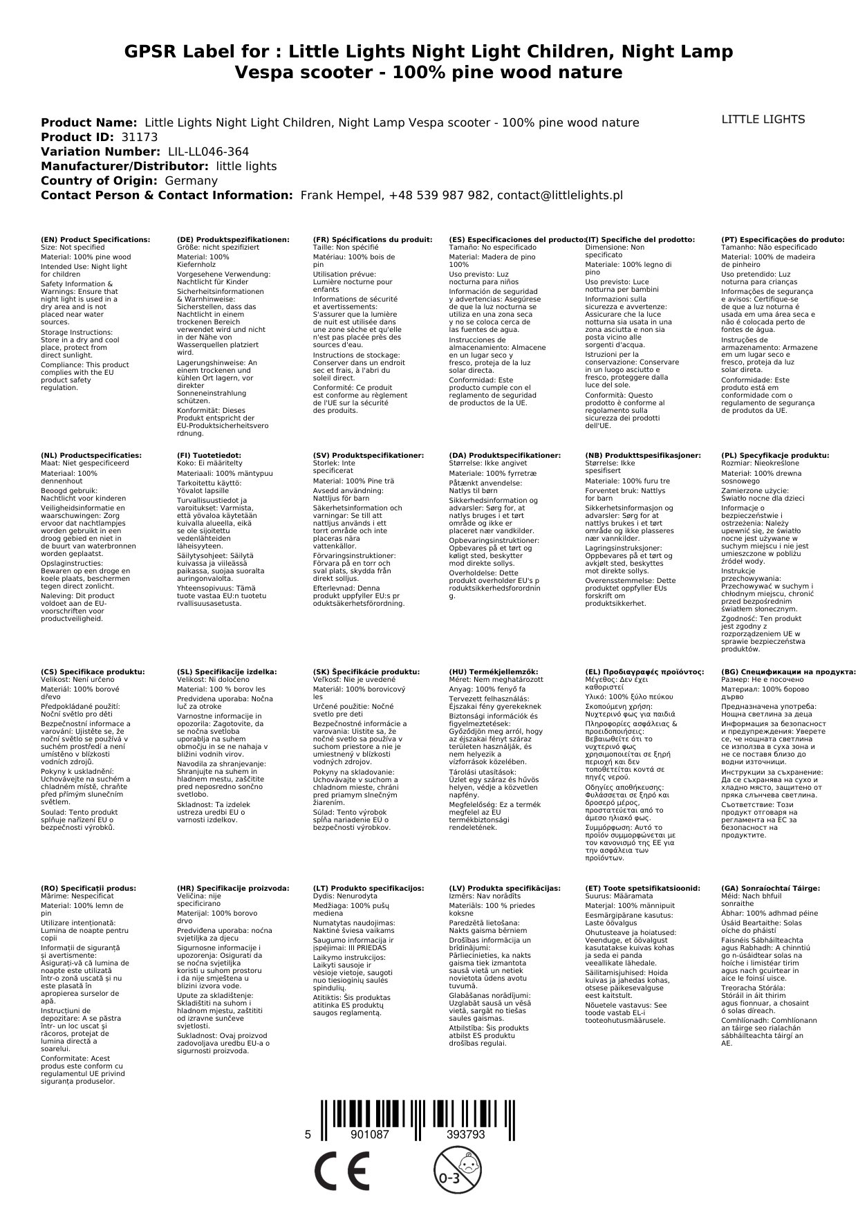 Stellen Sie eine Frage, um mehr über das Produkt zu erfahrenLittle Lights Nachtlicht Kinder, Nachtlampe Vespa-Roller - 100% Kiefernholz natur