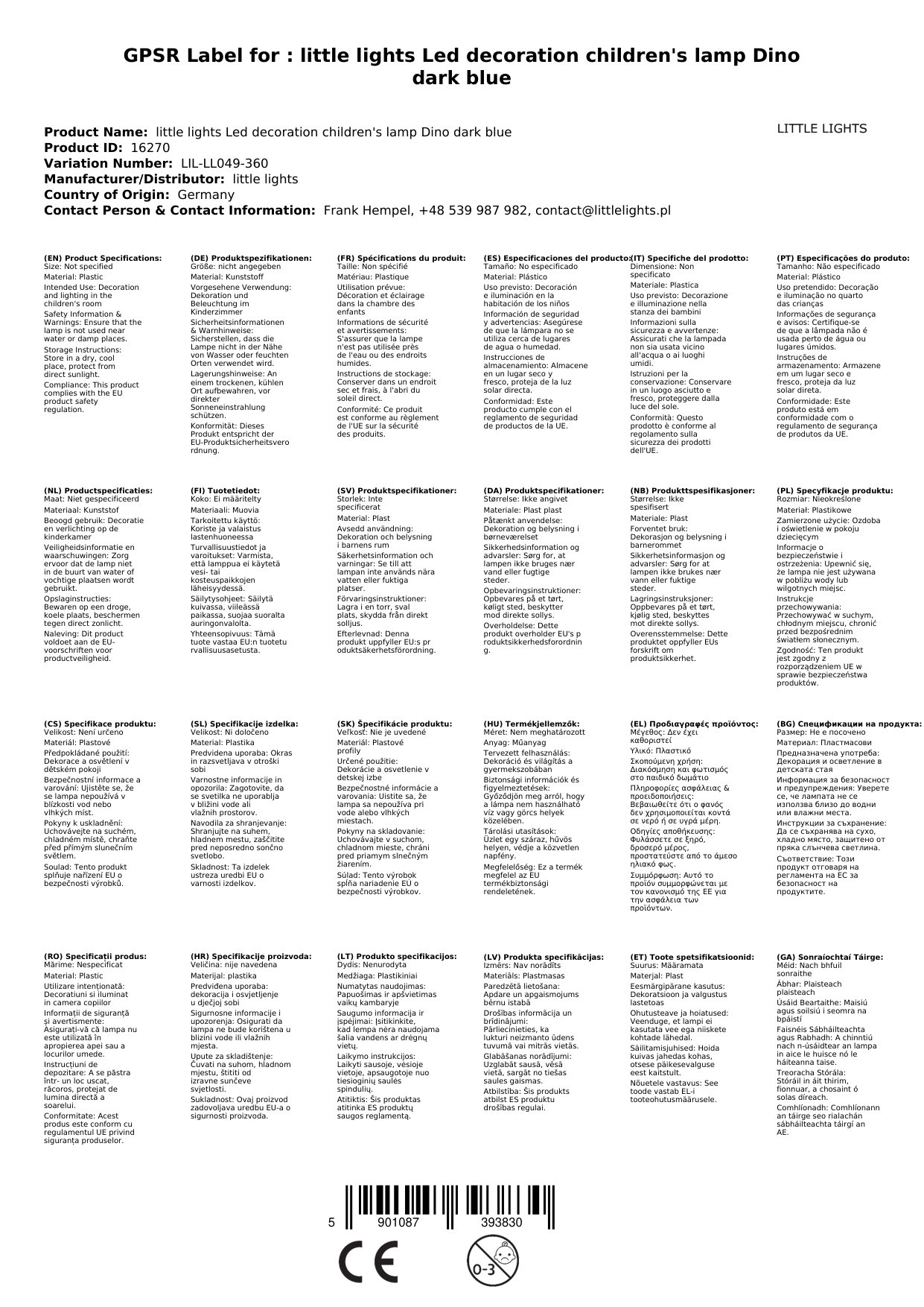 little lights Led Deko Kinderlampe Dino dunkelblau