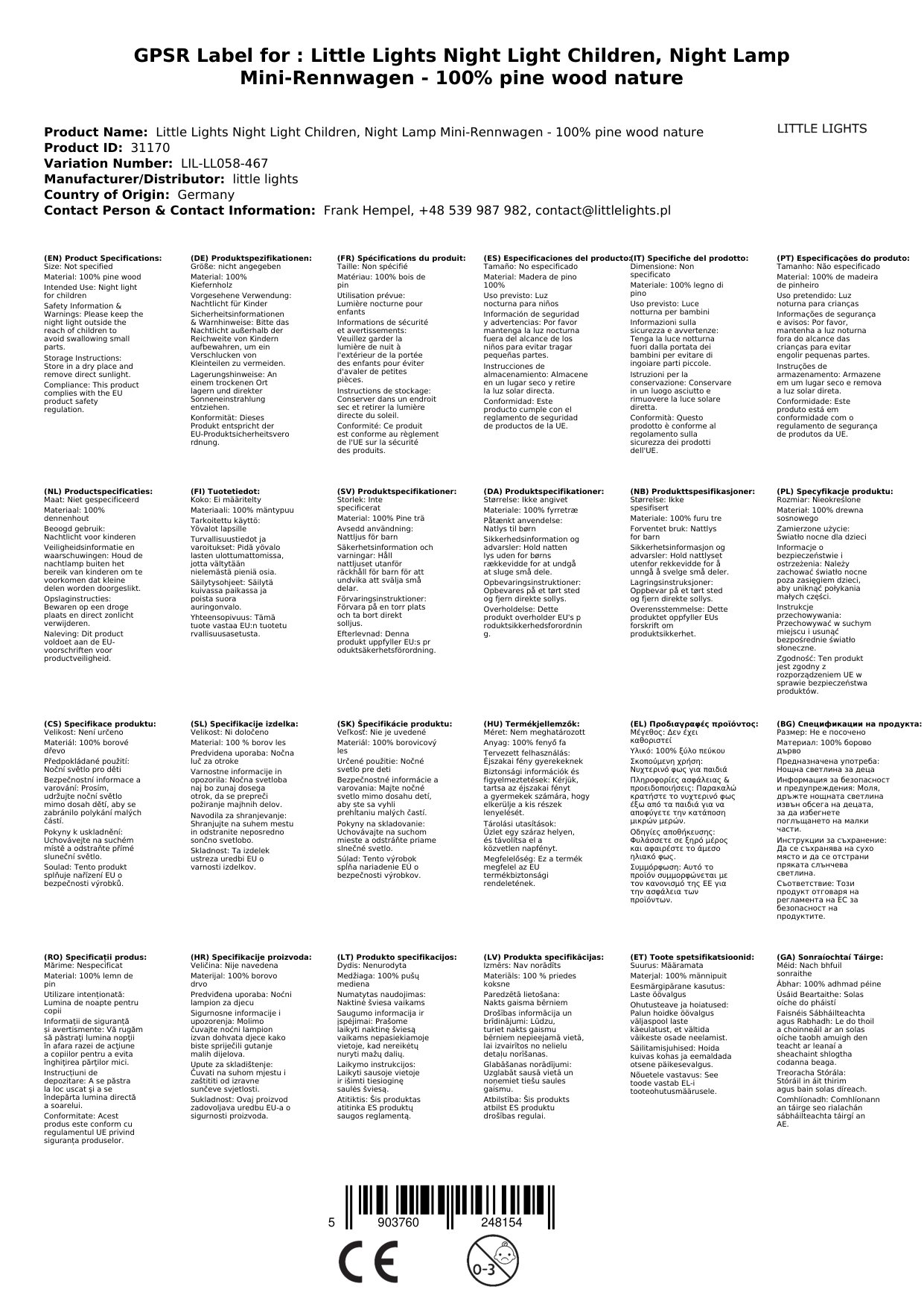 Stellen Sie eine Frage, um mehr über das Produkt zu erfahrenLittle Lights Nachtlicht Kinder, Nachtlampe Mini-Rennwagen - 100% Kiefernholz natur