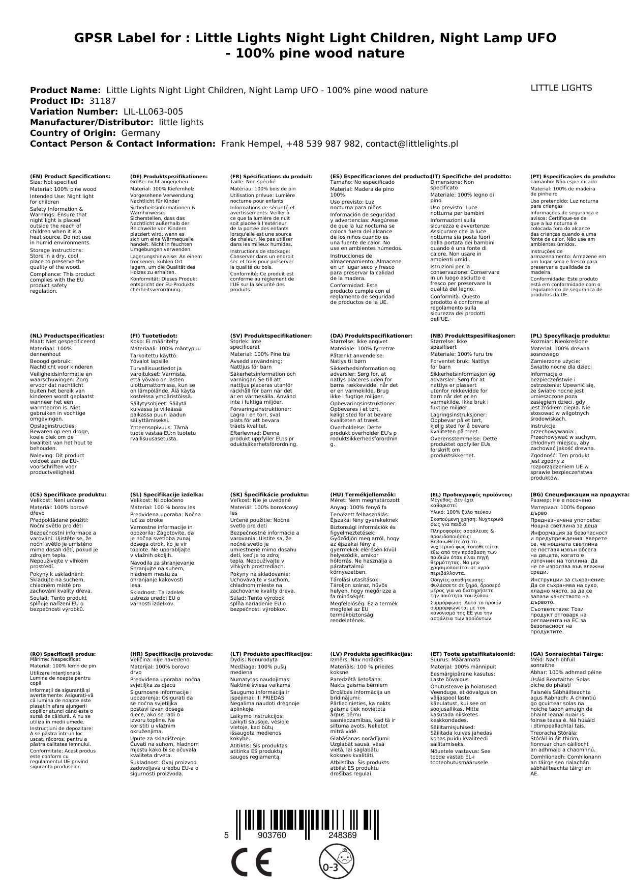 Stellen Sie eine Frage, um mehr über das Produkt zu erfahrenLittle Lights Nachtlicht Kinder, Nachtlampe UFO - 100% Kiefernholz natur