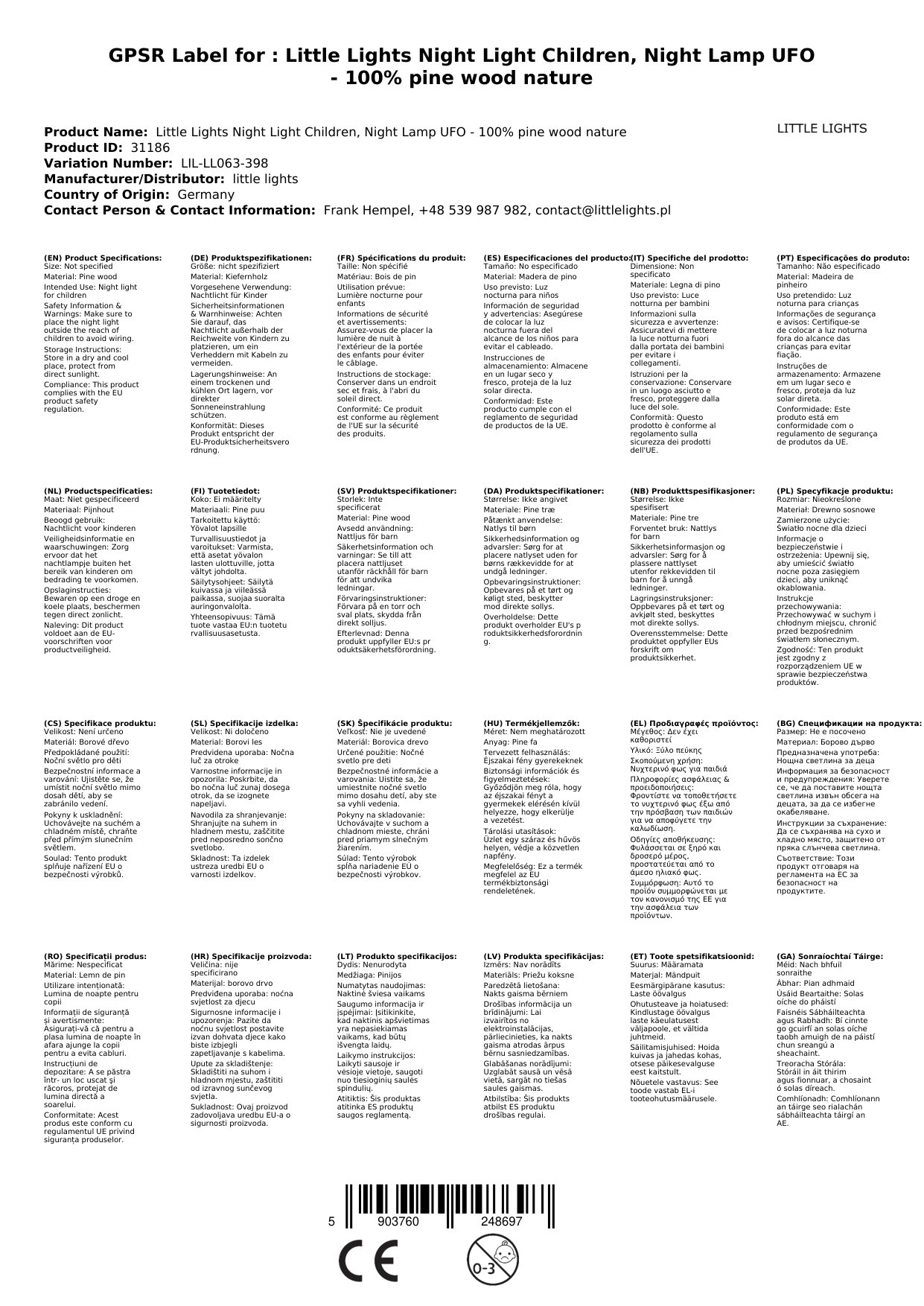 Das Little Lights Nachtlicht bietet eine warme und beruhigende Beleuchtung, ideal für Kinderzimmer. Es ist handgefertigt aus 100% Kiefernholz und sorgt für eine natürliche und sichere Umgebung. Die sanfte Helligkeit hilft Kindern, sich in der Nacht sicher zu fühlen und leichter einzuschlafen. Warum das für Sie wichtig ist: Sie erhalten ein hochwertiges, sicheres und stilvolles Nachtlicht, das Ihrem Kind Geborgenheit schenkt.