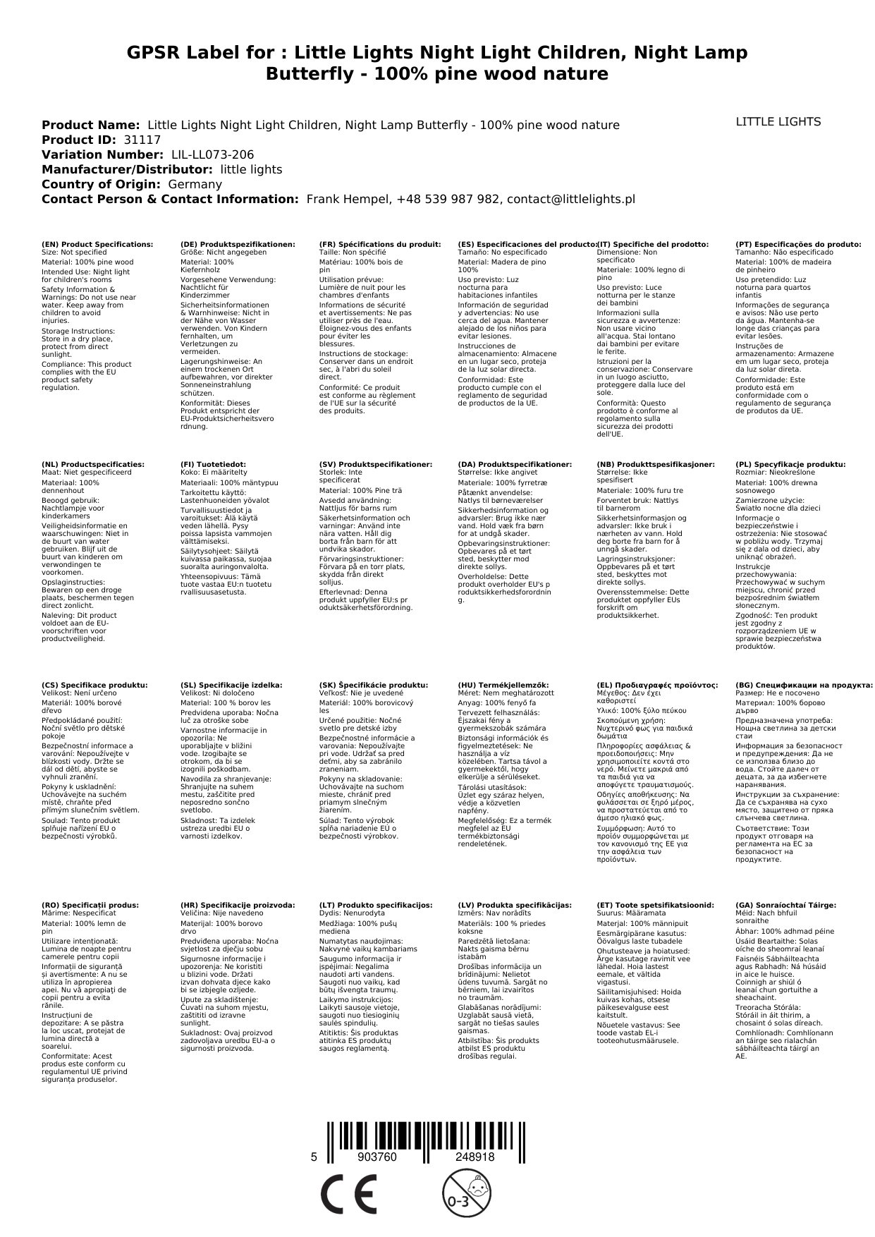 Stellen Sie eine Frage, um mehr über das Produkt zu erfahrenLittle Lights Nachtlicht Kinder, Nachtlampe Schmetterling - 100% Kiefernholz natur