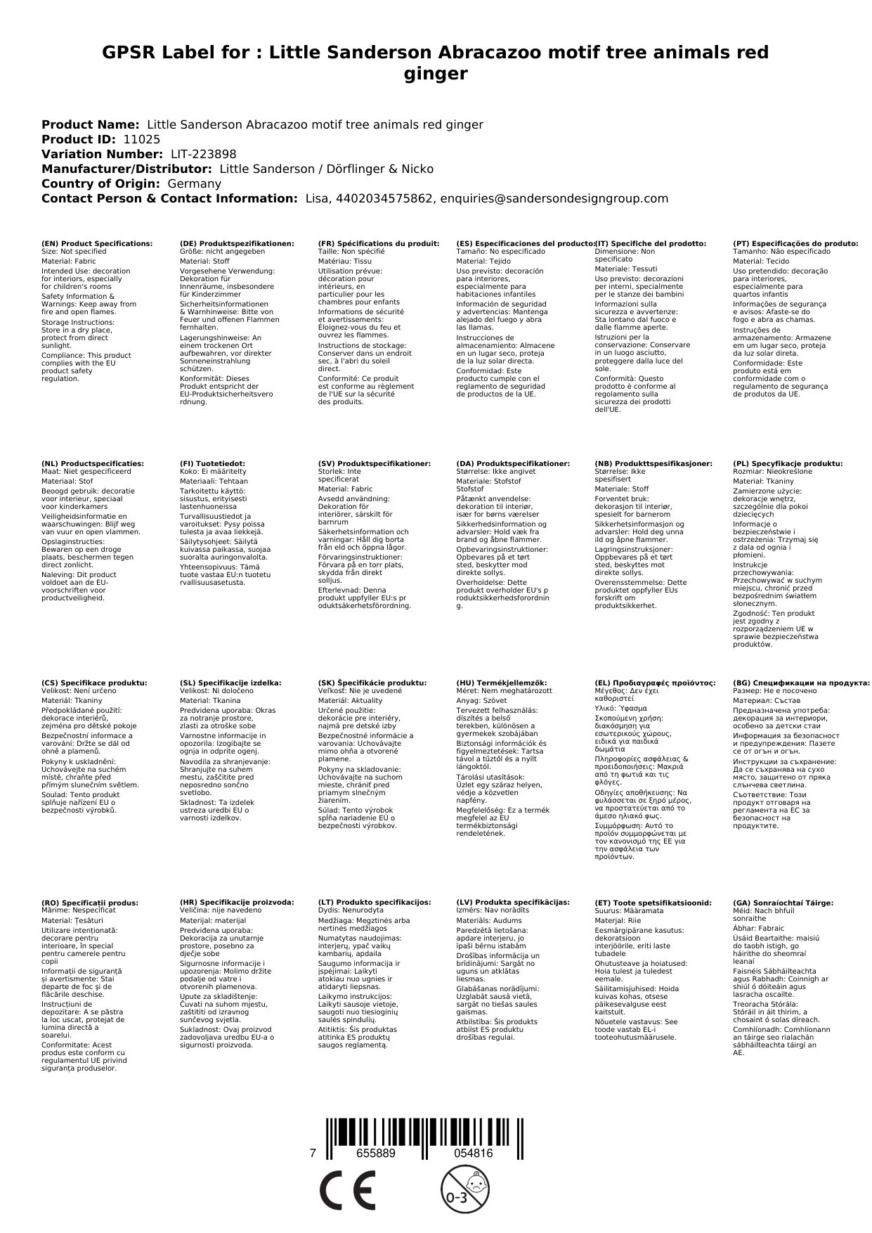 Little Sanderson Abracazoo Motivstoff Baumtiere rot Ingwer