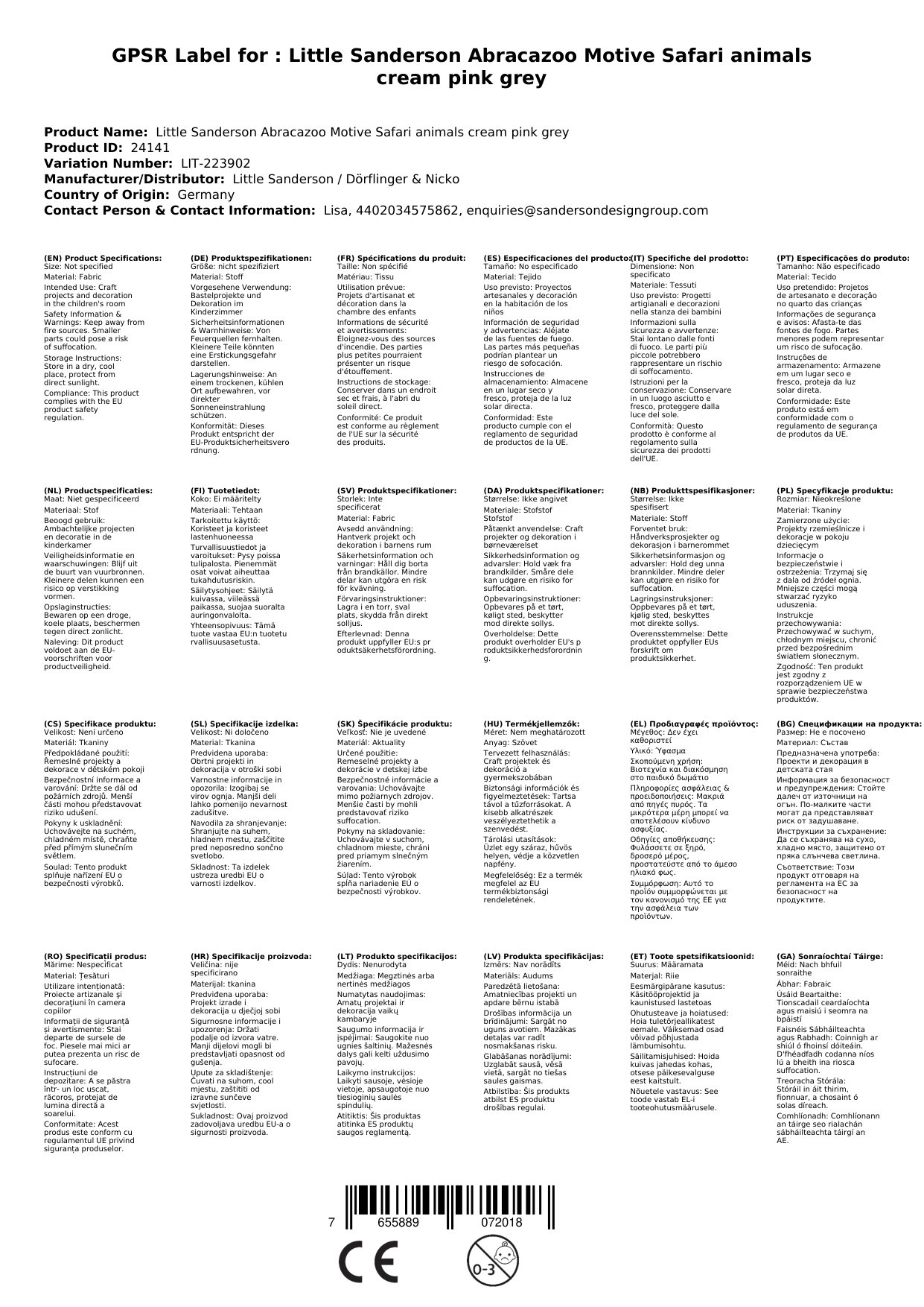 Little Sanderson Abracazoo Motivstoff Safari Tiere creme rosa grau