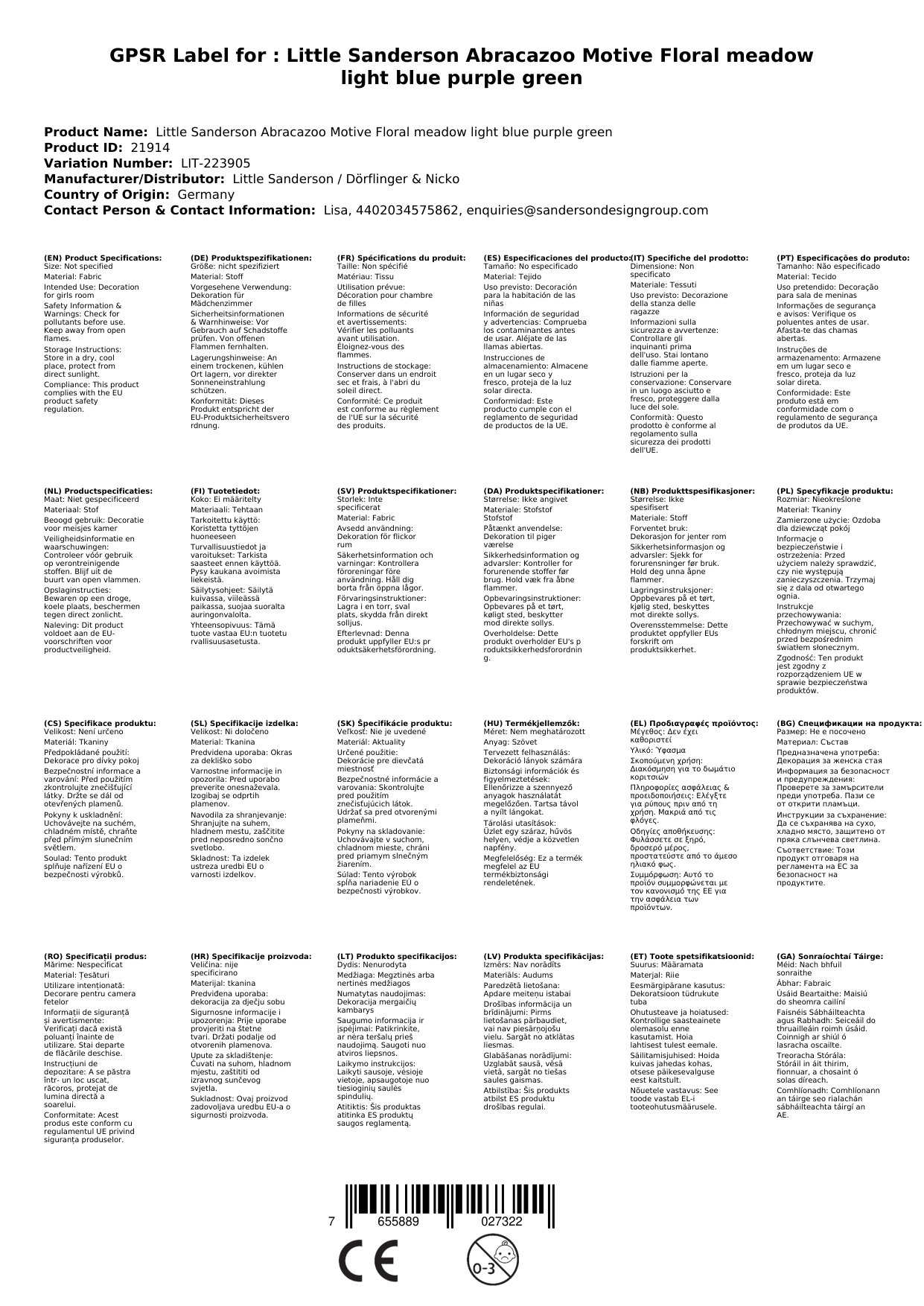 Stellen Sie eine Frage, um mehr über das Produkt zu erfahrenHier sehen Sie den zauberhaften Motivstoff Posy Floral von Little Sanderson aus der Kollektion Abracazoo.