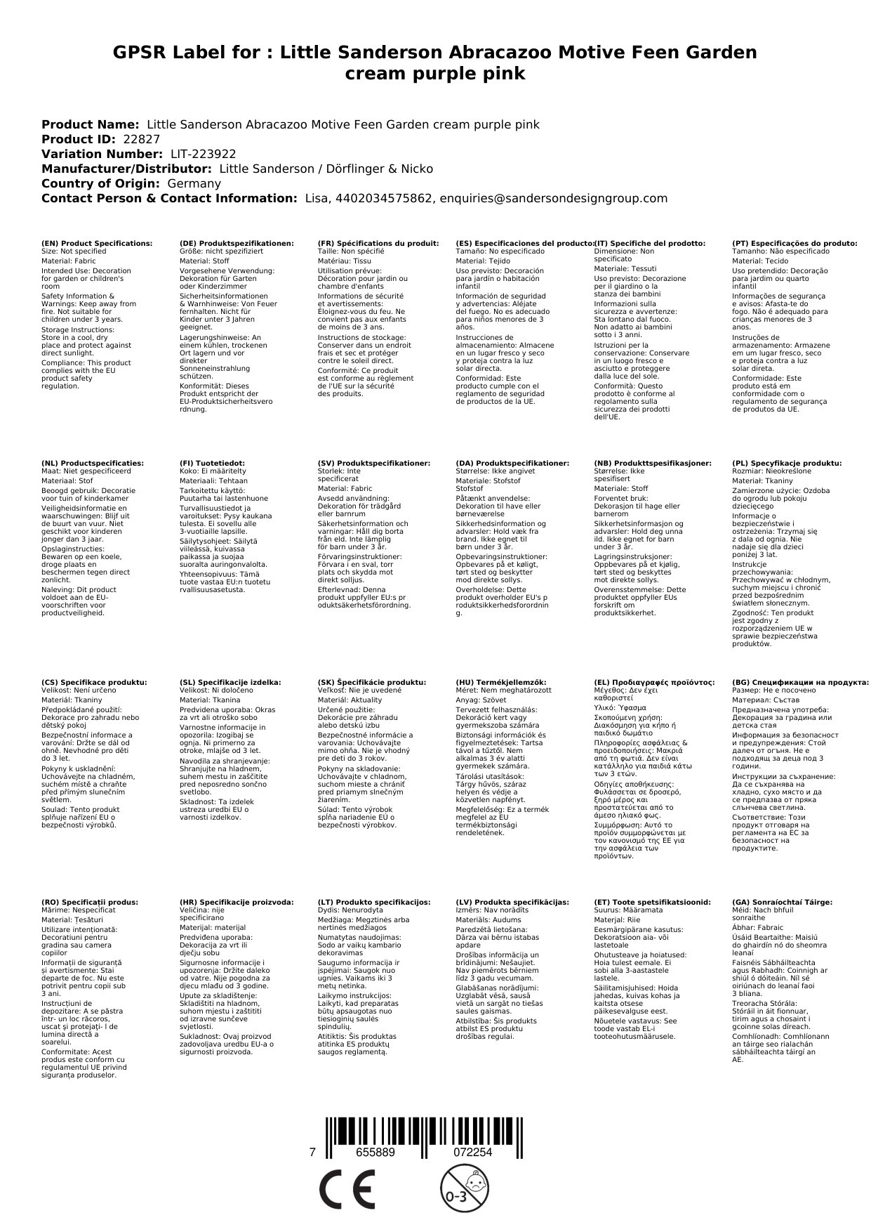 Little Sanderson Abracazoo Motivstoff Feen Garten creme lila pink