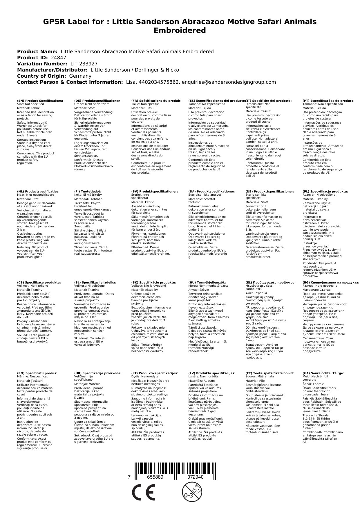 Little Sanderson Abracazoo Motivstoff Safari Tiere bestickt