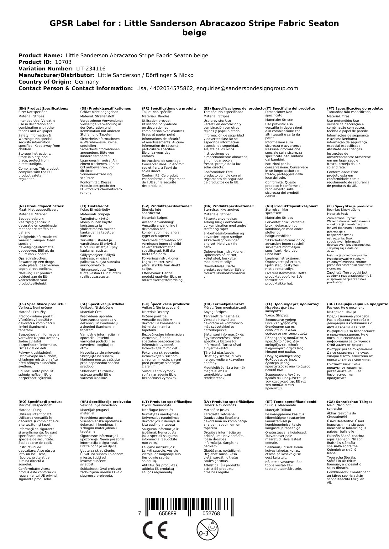 Little Sanderson Abracazoo Streifenstoff Seaton beige