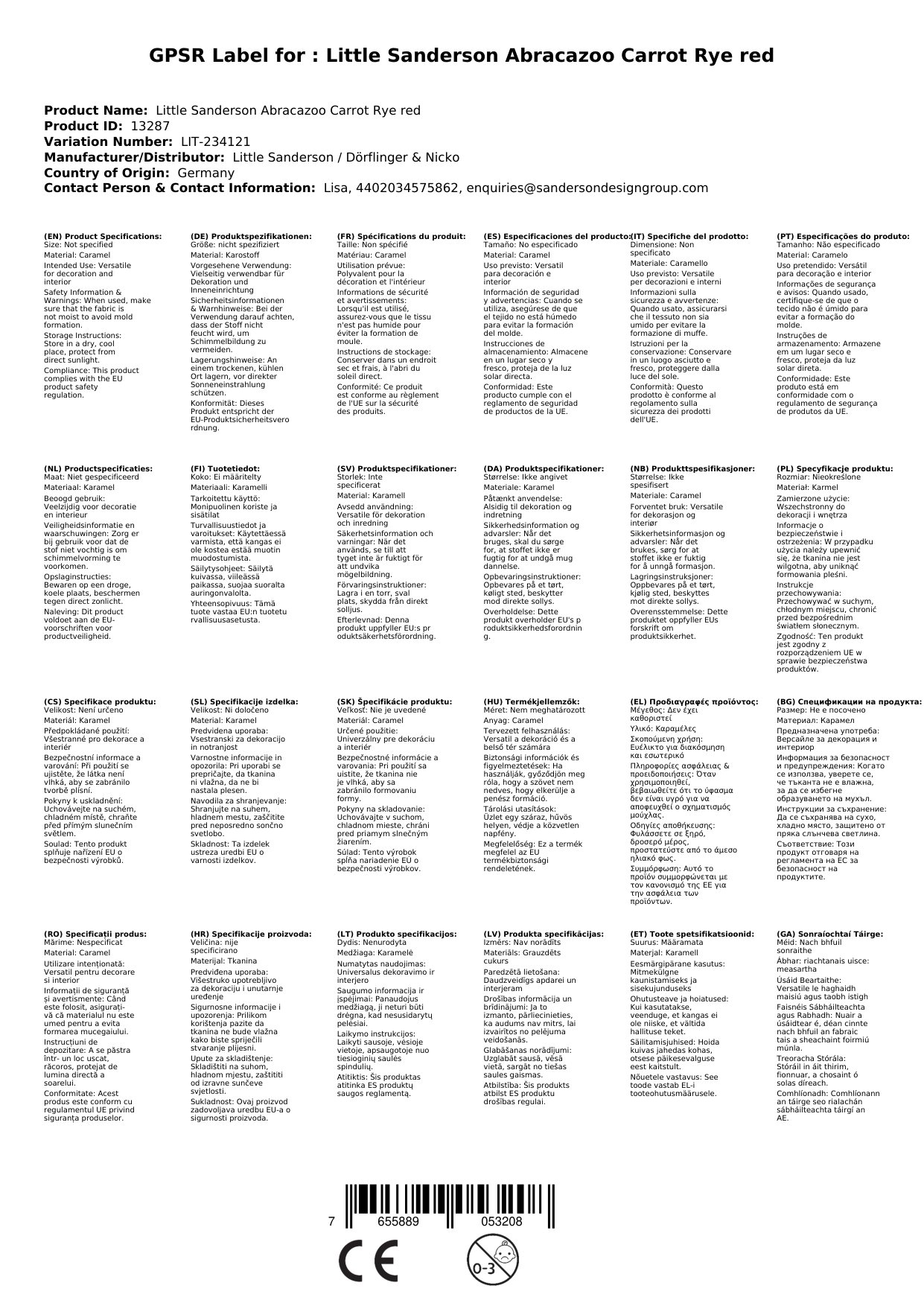 Stellen Sie eine Frage, um mehr über das Produkt zu erfahrenHier sehen Sie einen klassischen und schönen Karostoff von Little Sanderson aus der Kollektion Abracazoo.