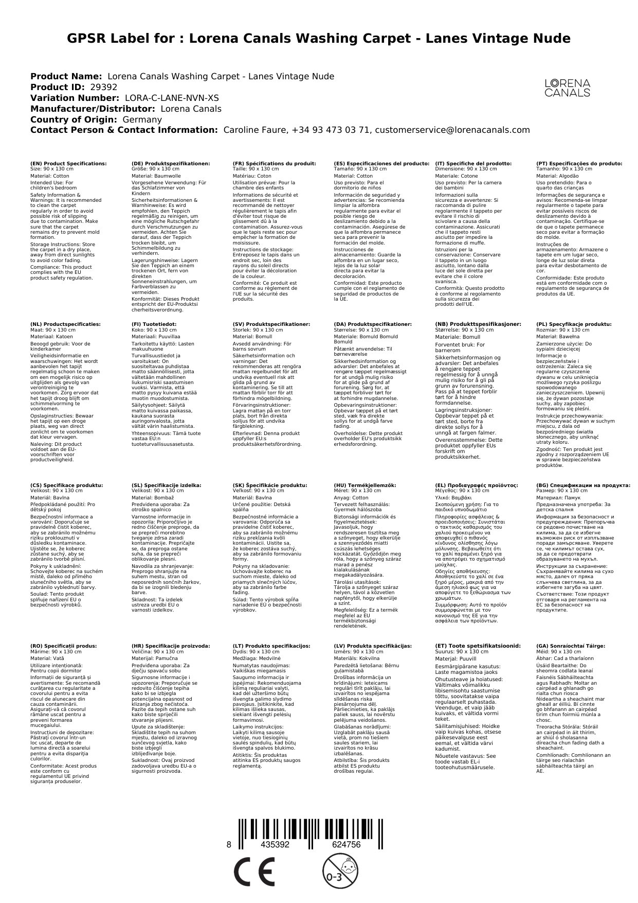 Stellen Sie eine Frage, um mehr über das Produkt zu erfahrenLorena Canals Waschbarer Teppich - Lanes Vintage Nude