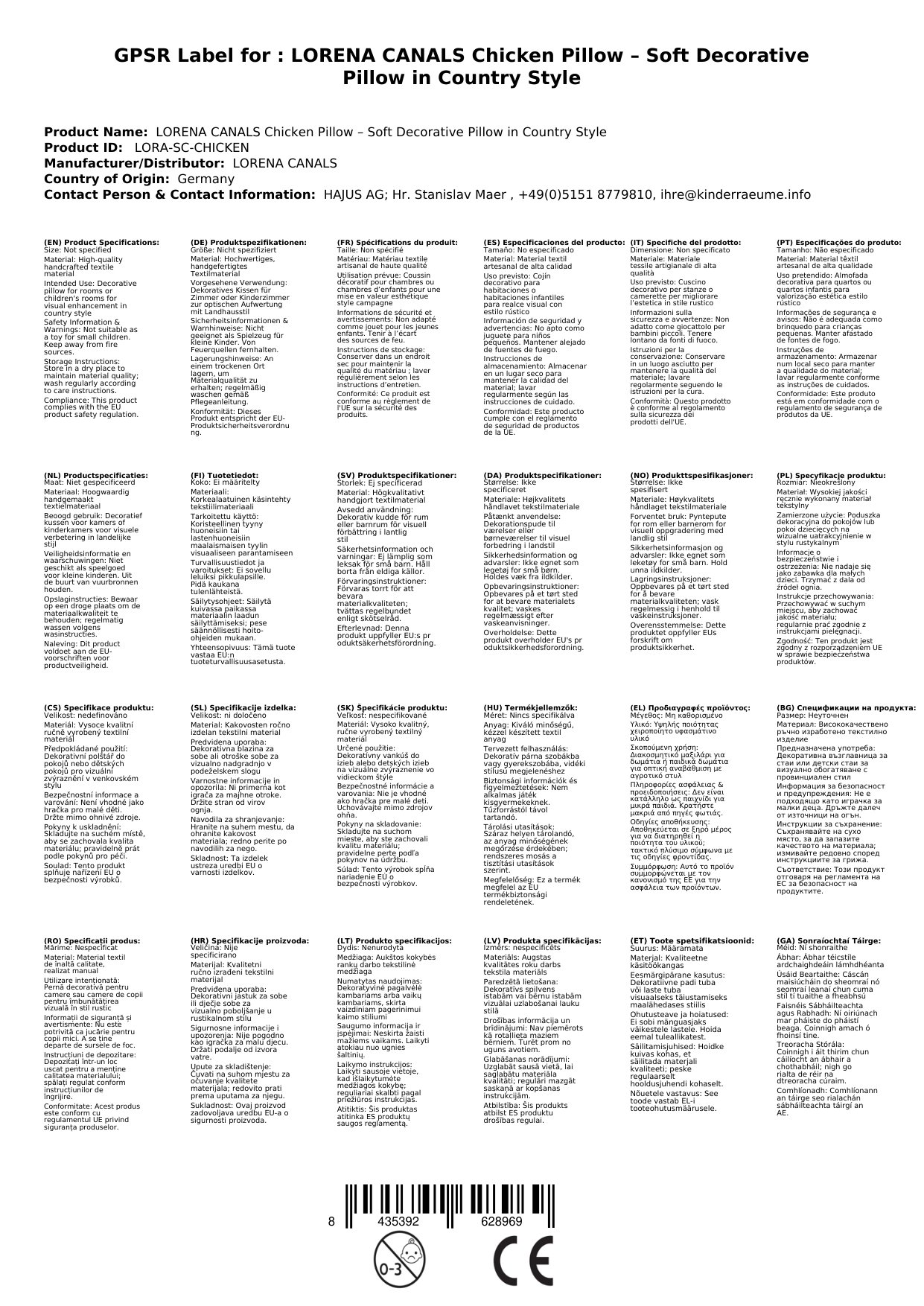 | Produktart | Dekokissen / Kinderkissen |