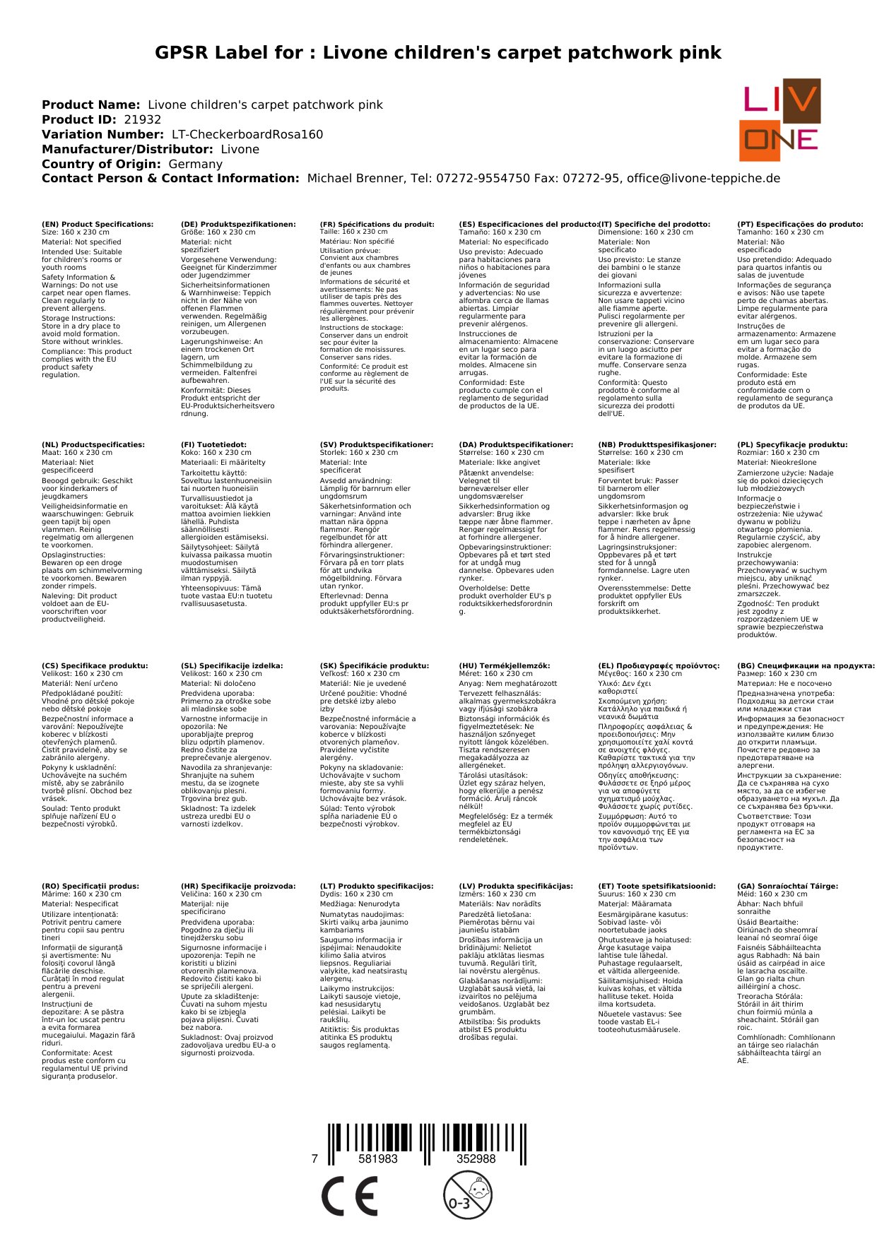 Stellen Sie eine Frage, um mehr über das Produkt zu erfahrenHier sehen Sie einen zauberhaften Kinderteppich von Livone.