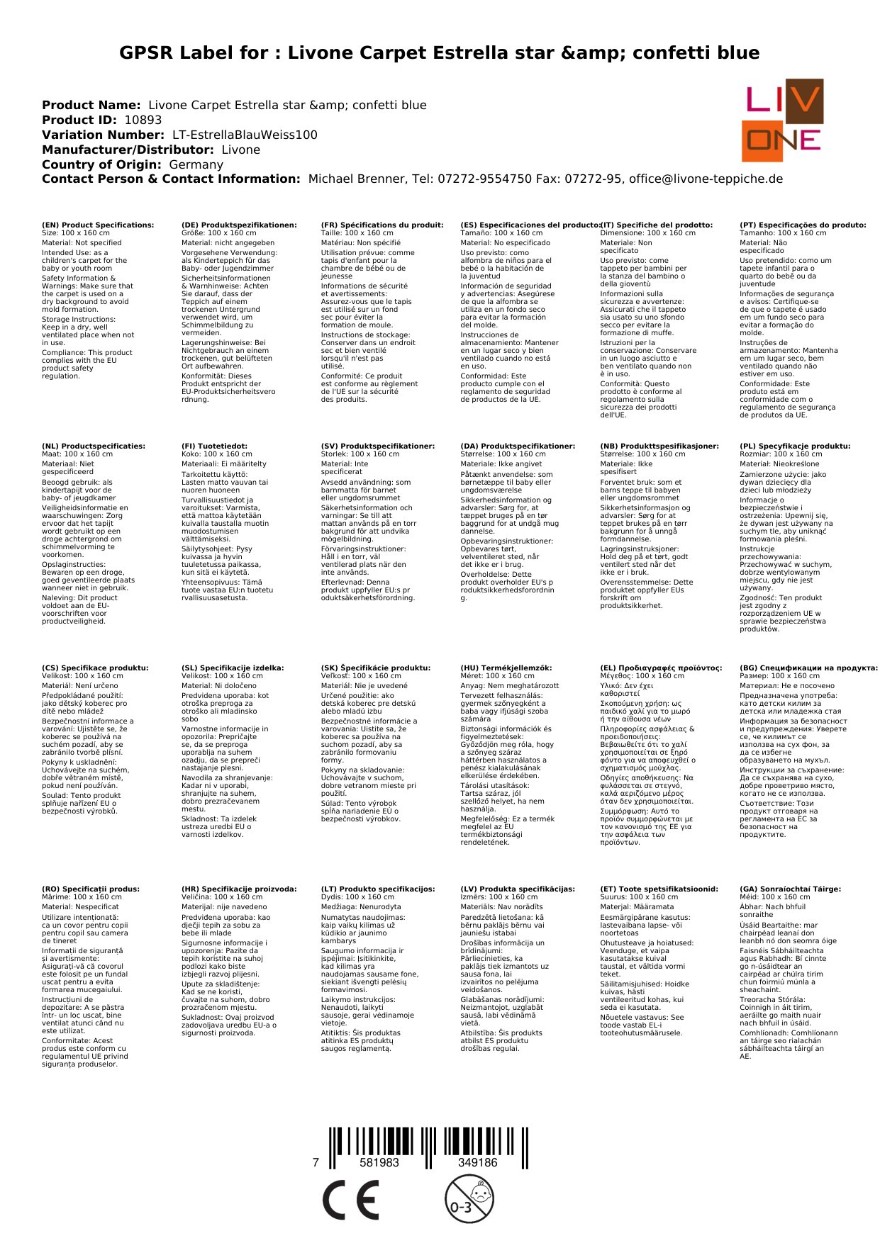 Stellen Sie eine Frage, um mehr über das Produkt zu erfahrenHier sehen Sie einen zauberhaften Kinderteppich von Livone.