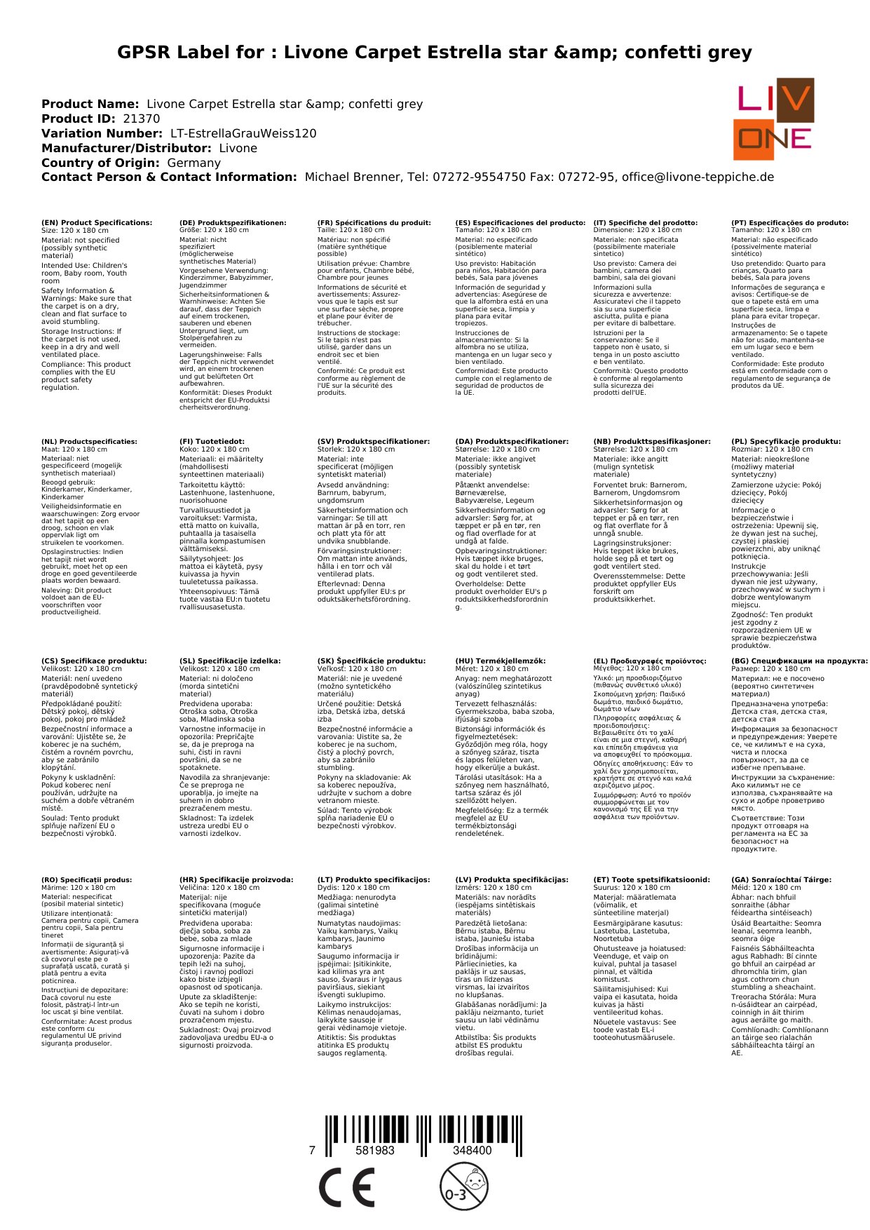 Stellen Sie eine Frage, um mehr über das Produkt zu erfahrenHier sehen Sie einen zauberhaften Kinderteppich von Livone.