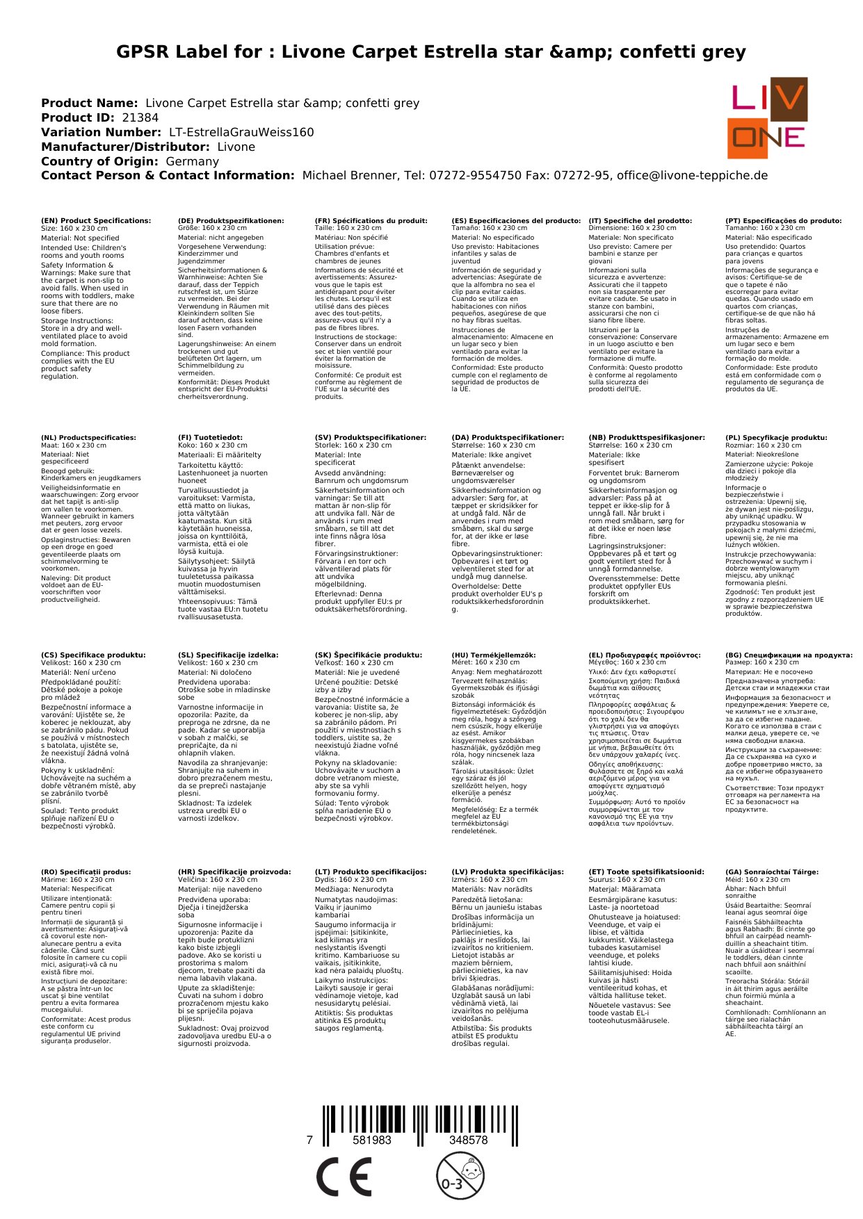 Stellen Sie eine Frage, um mehr über das Produkt zu erfahrenHier sehen Sie einen zauberhaften Kinderteppich von Livone.