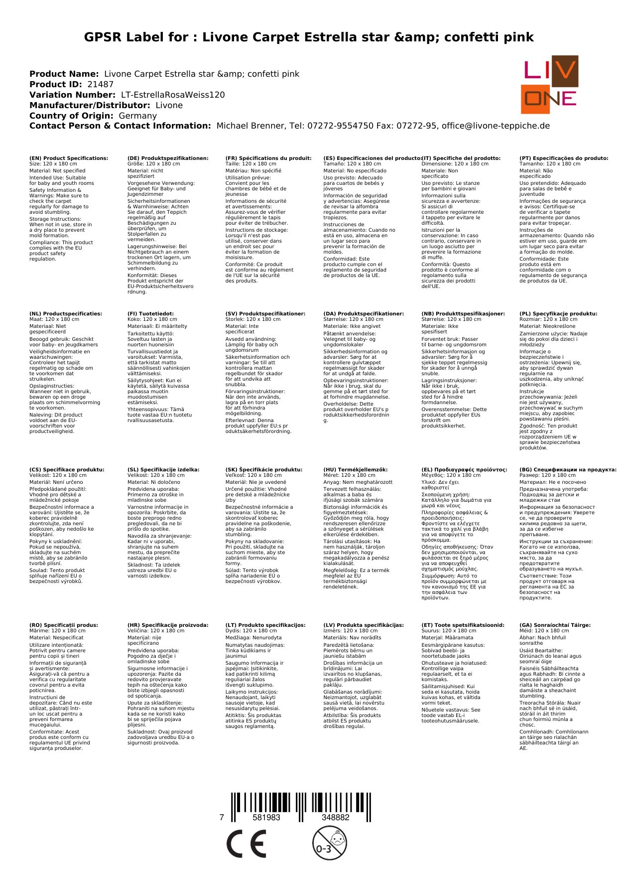Stellen Sie eine Frage, um mehr über das Produkt zu erfahrenHier sehen Sie einen zauberhaften Kinderteppich von Livone.