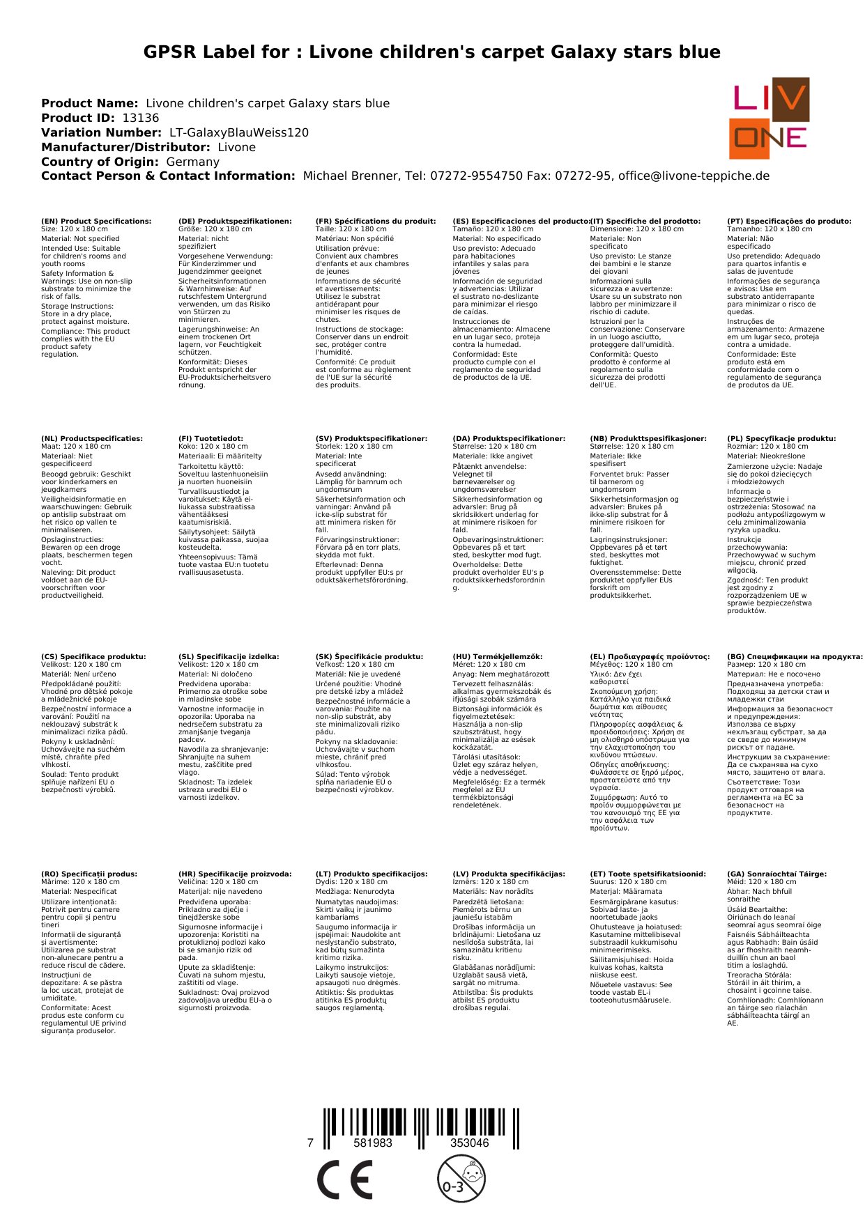 Stellen Sie eine Frage, um mehr über das Produkt zu erfahrenHier sehen Sie einen zauberhaften Kinderteppich von Livone.