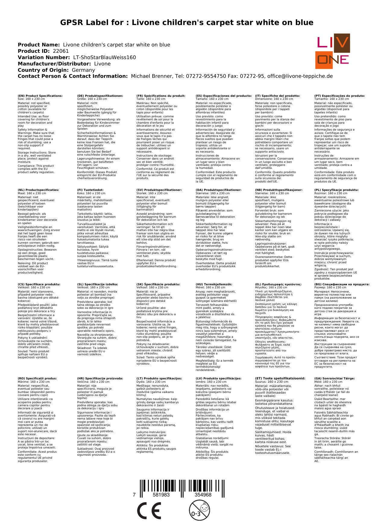 Stellen Sie eine Frage, um mehr über das Produkt zu erfahrenHier sehen Sie einen zauberhaften Kinderteppich von Livone.