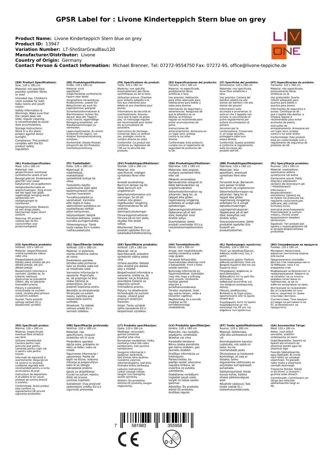 Stellen Sie eine Frage, um mehr über das Produkt zu erfahrenHier sehen Sie einen zauberhaften Kinderteppich von Livone.