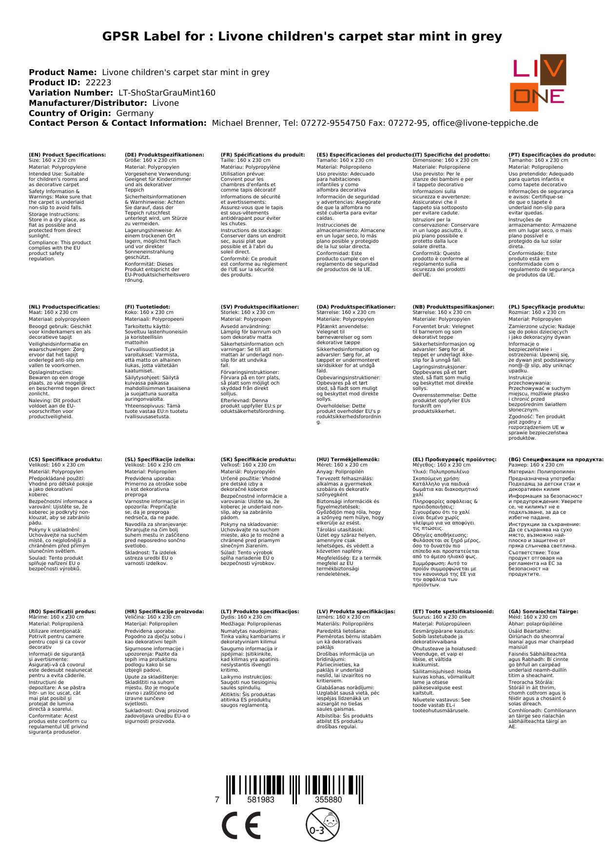 Stellen Sie eine Frage, um mehr über das Produkt zu erfahrenHier sehen Sie einen zauberhaften Kinderteppich von Livone.