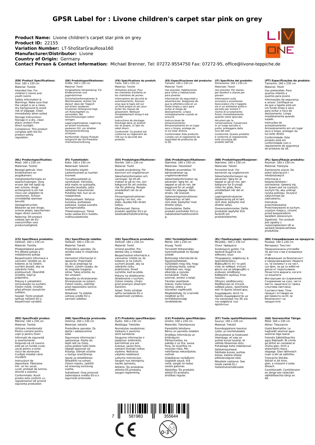 Stellen Sie eine Frage, um mehr über das Produkt zu erfahrenHier sehen Sie einen zauberhaften Kinderteppich von Livone.