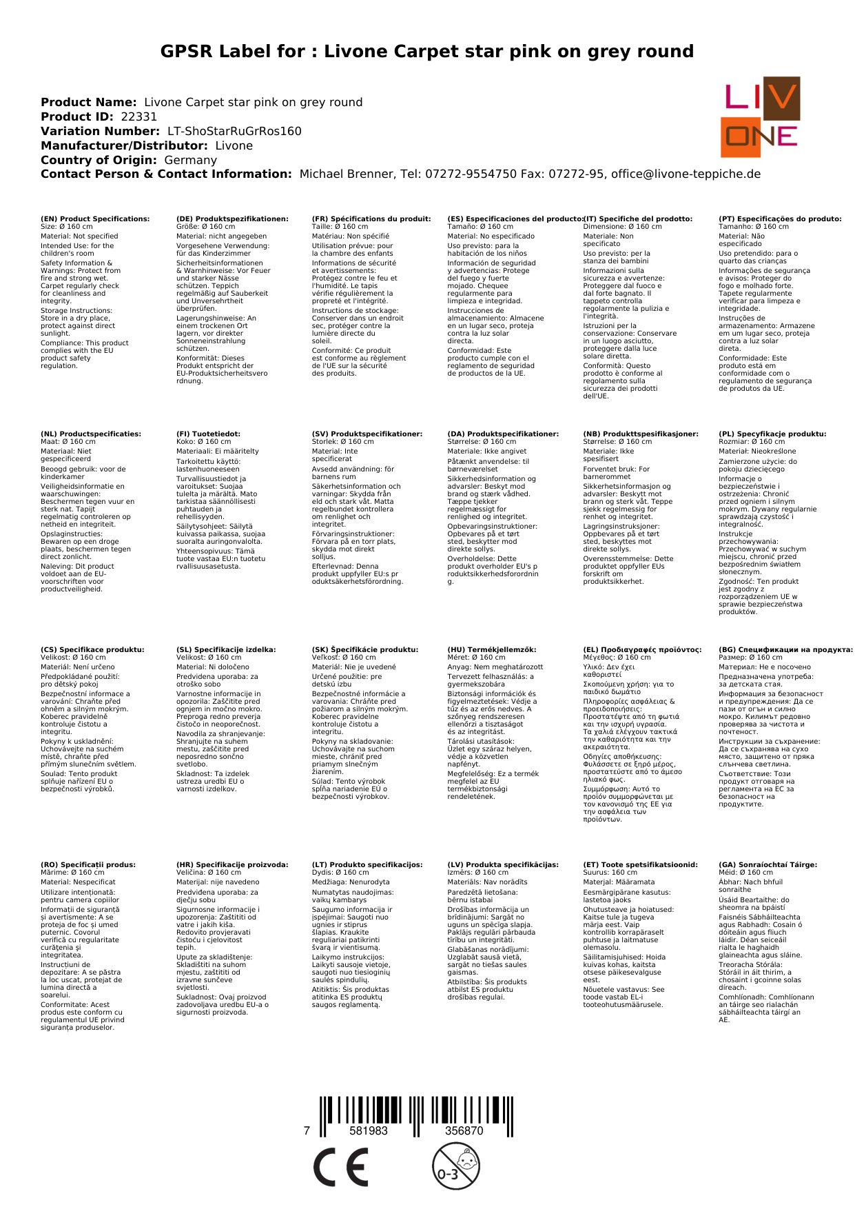 Stellen Sie eine Frage, um mehr über das Produkt zu erfahrenHier sehen Sie einen zauberhaften Kinderteppich von Livone.