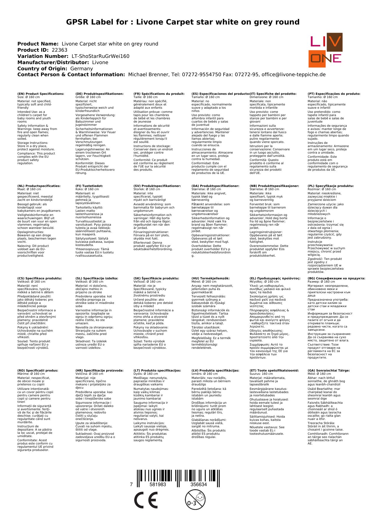 Stellen Sie eine Frage, um mehr über das Produkt zu erfahrenHier sehen Sie einen zauberhaften Kinderteppich von Livone.