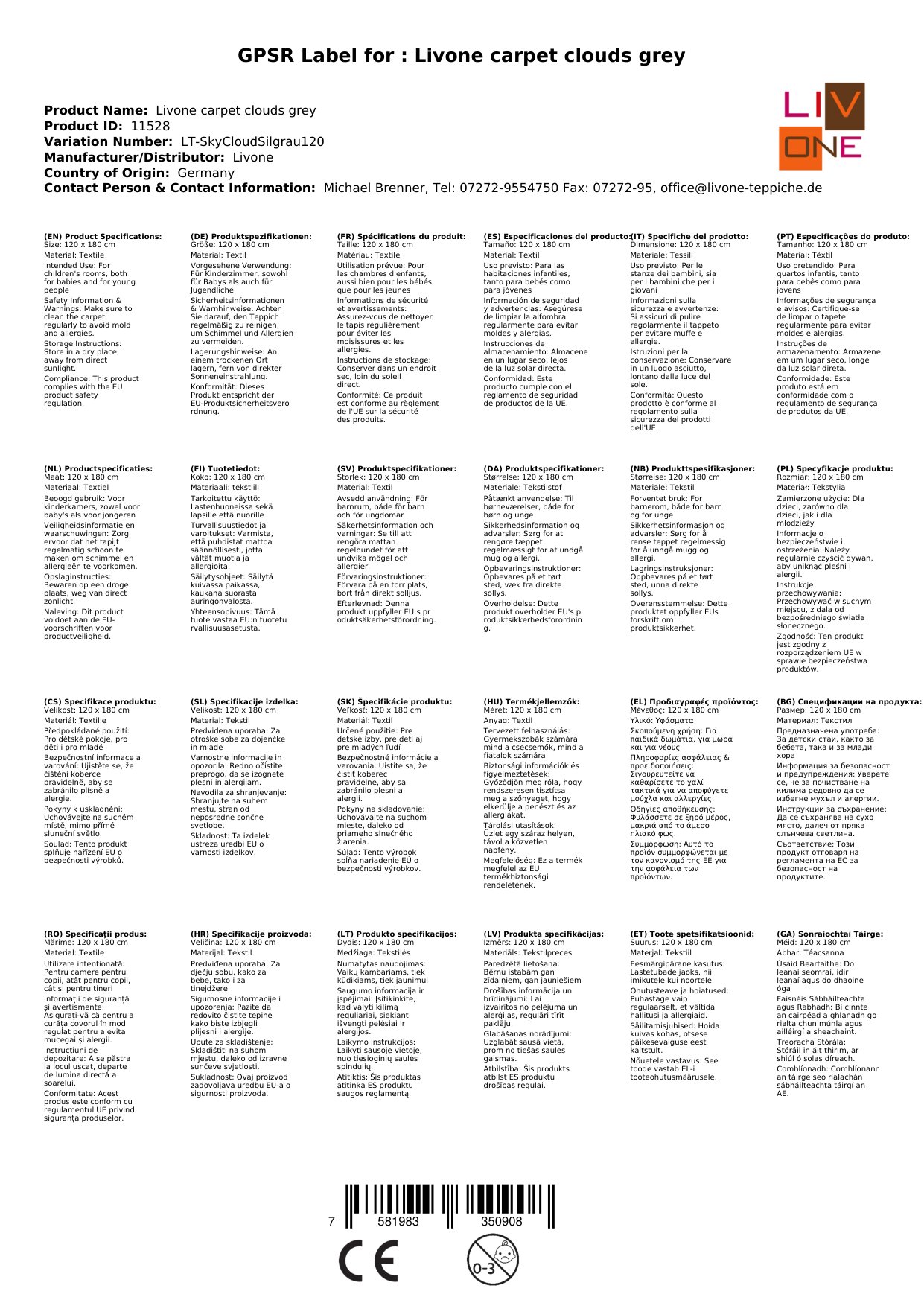 Stellen Sie eine Frage, um mehr über das Produkt zu erfahrenHier sehen Sie einen zauberhaften Kinderteppich von Livone.