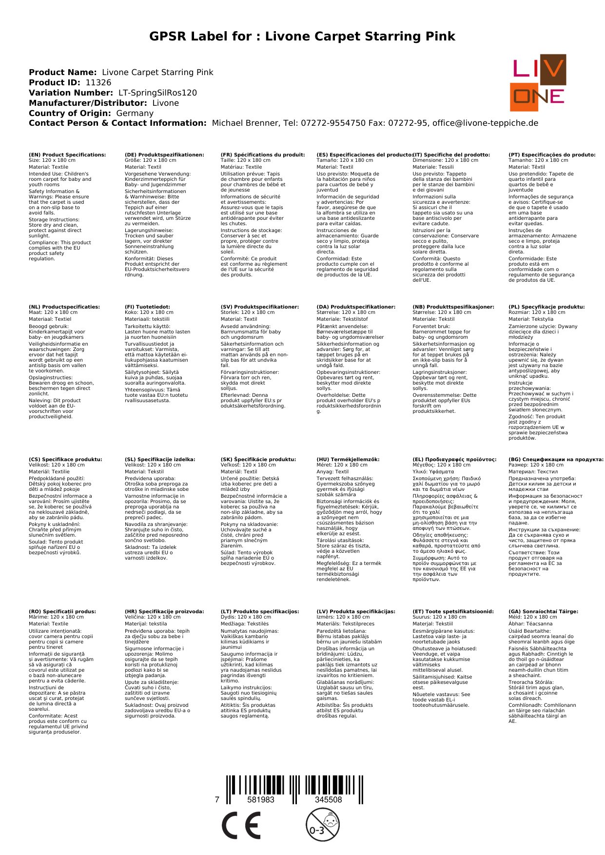 Stellen Sie eine Frage, um mehr über das Produkt zu erfahrenHier sehen Sie einen zauberhaften Kinderteppich von Livone.