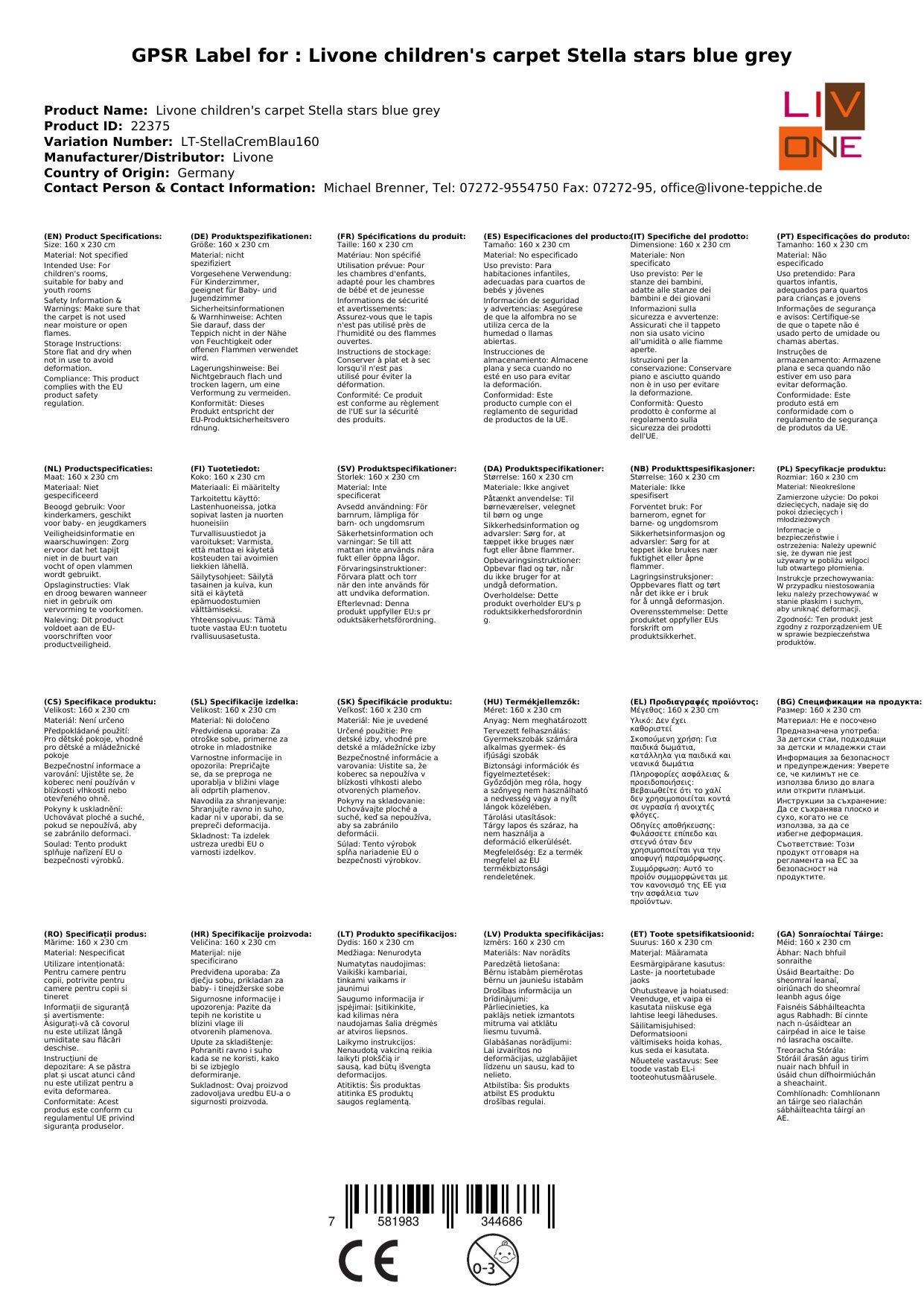 Stellen Sie eine Frage, um mehr über das Produkt zu erfahrenHier sehen Sie einen zauberhaften Kinderteppich von Livone.