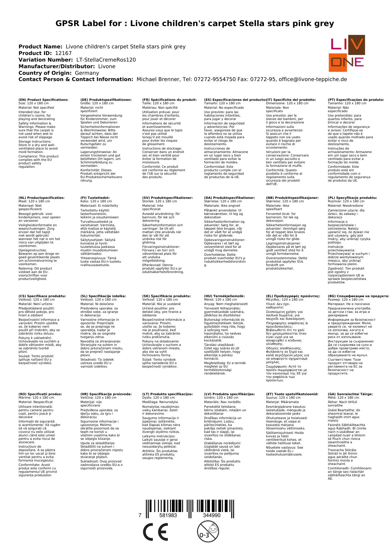 Stellen Sie eine Frage, um mehr über das Produkt zu erfahrenHier sehen Sie einen zauberhaften Kinderteppich von Livone.