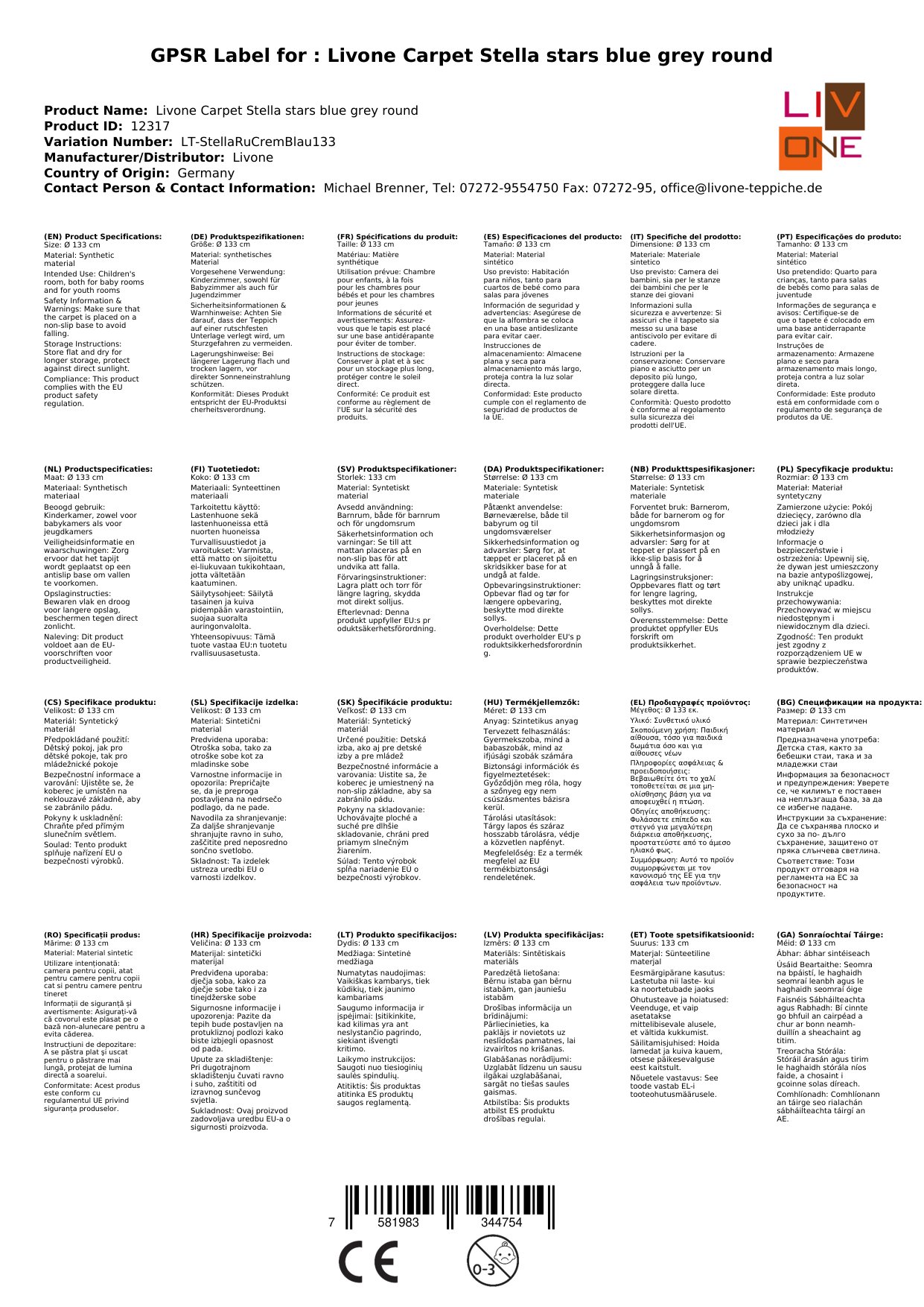 Stellen Sie eine Frage, um mehr über das Produkt zu erfahrenHier sehen Sie einen zauberhaften Kinderteppich von Livone.