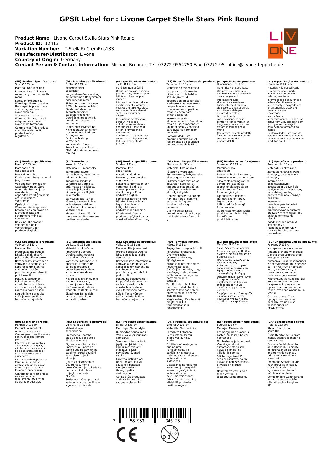 Stellen Sie eine Frage, um mehr über das Produkt zu erfahrenHier sehen Sie einen zauberhaften Kinderteppich von Livone.