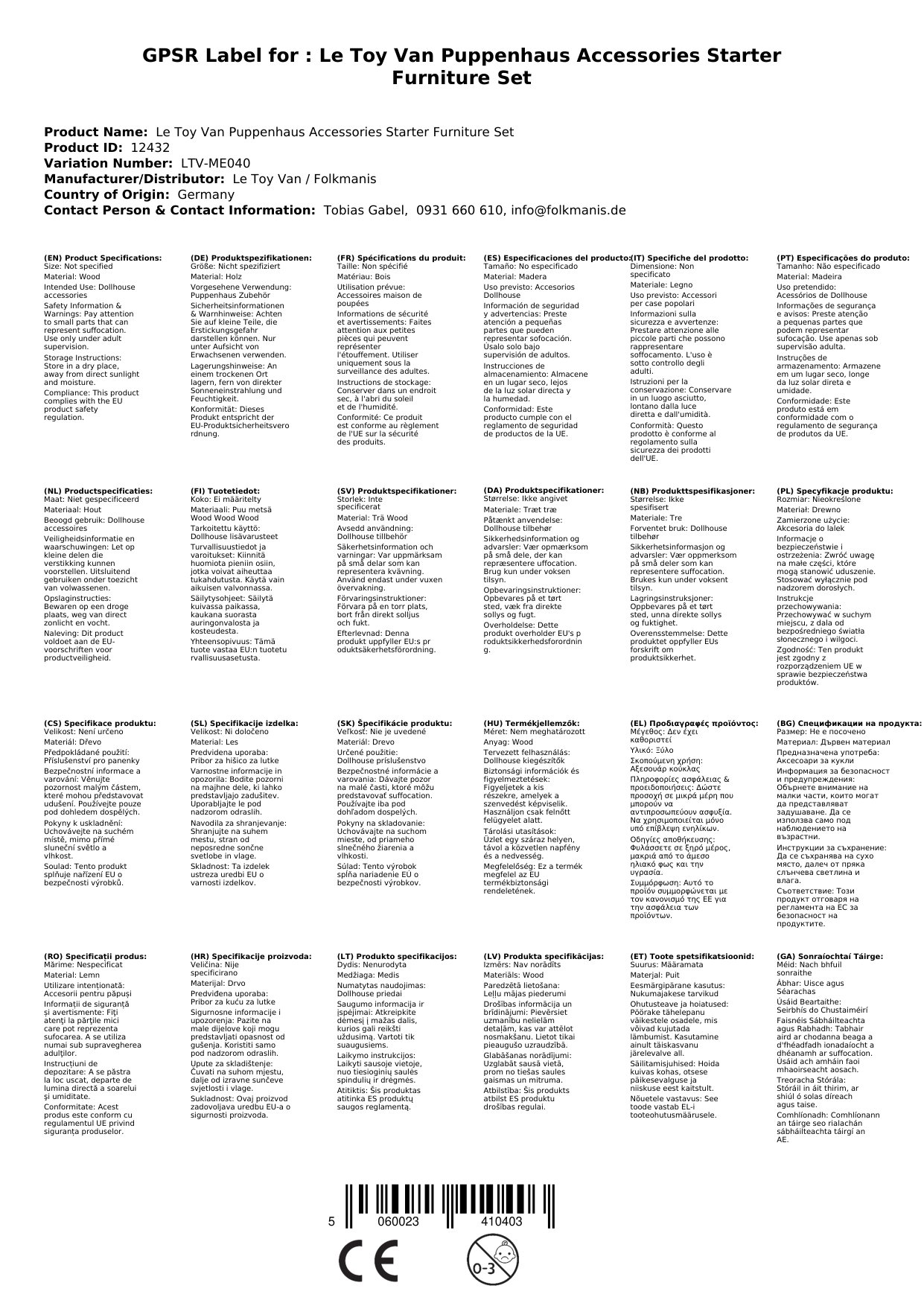 Mit diesem wunderbaren Starter Möbel Set von Le Toy Van aus Großbritannien sind die Puppenhäuser des Herstellers, die Sie in verschiedenen Größen und Ausstattungen in unserem Shop finden, direkt perfekt ausgestattet.