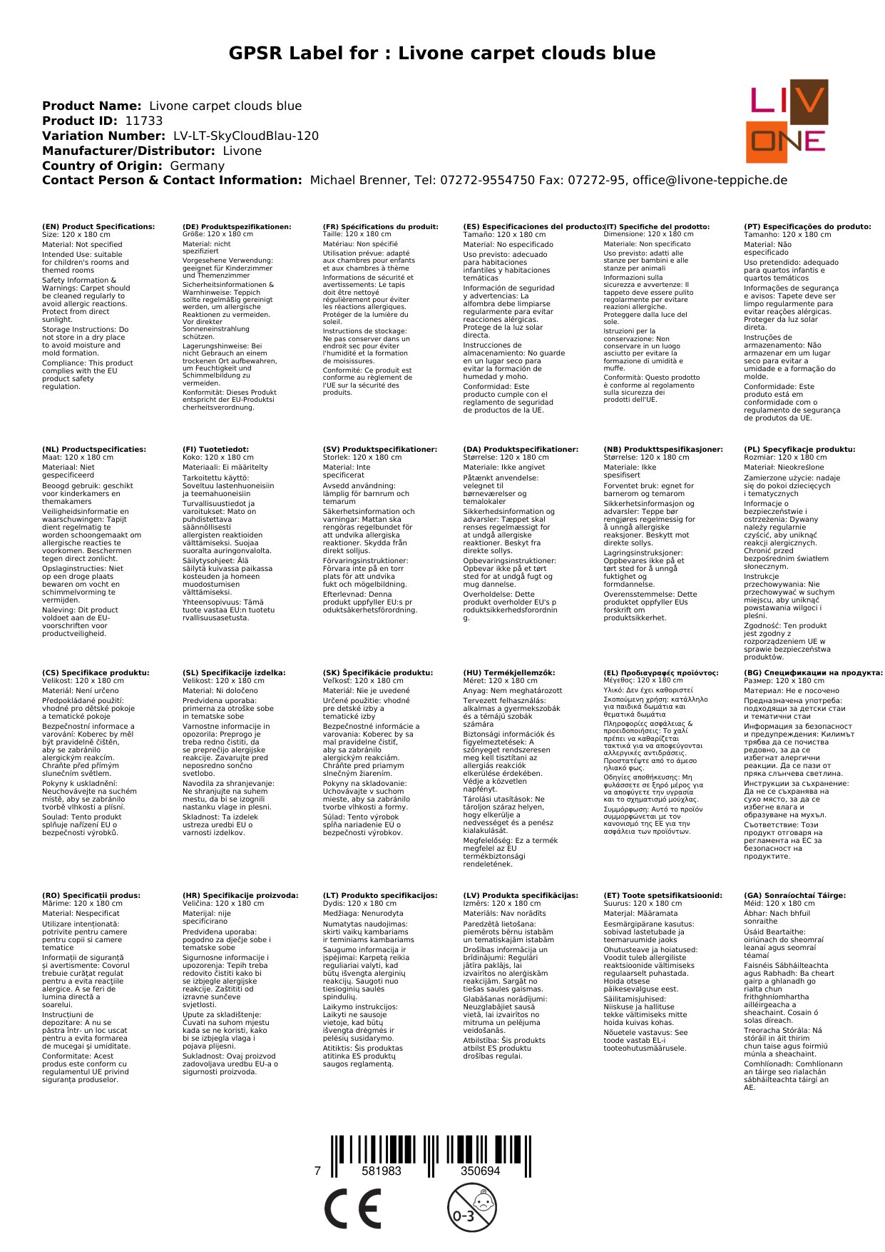 Livone Teppich Wolken blau, Teppichgrösse: 120 x 180 cm