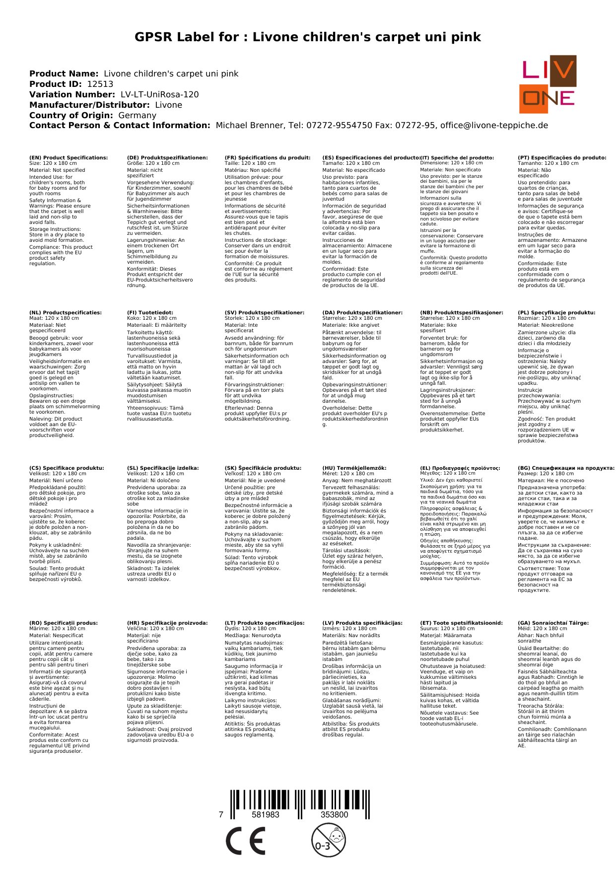 Stellen Sie eine Frage, um mehr über das Produkt zu erfahrenHier sehen Sie einen zauberhaften Kinderteppich von Livone.