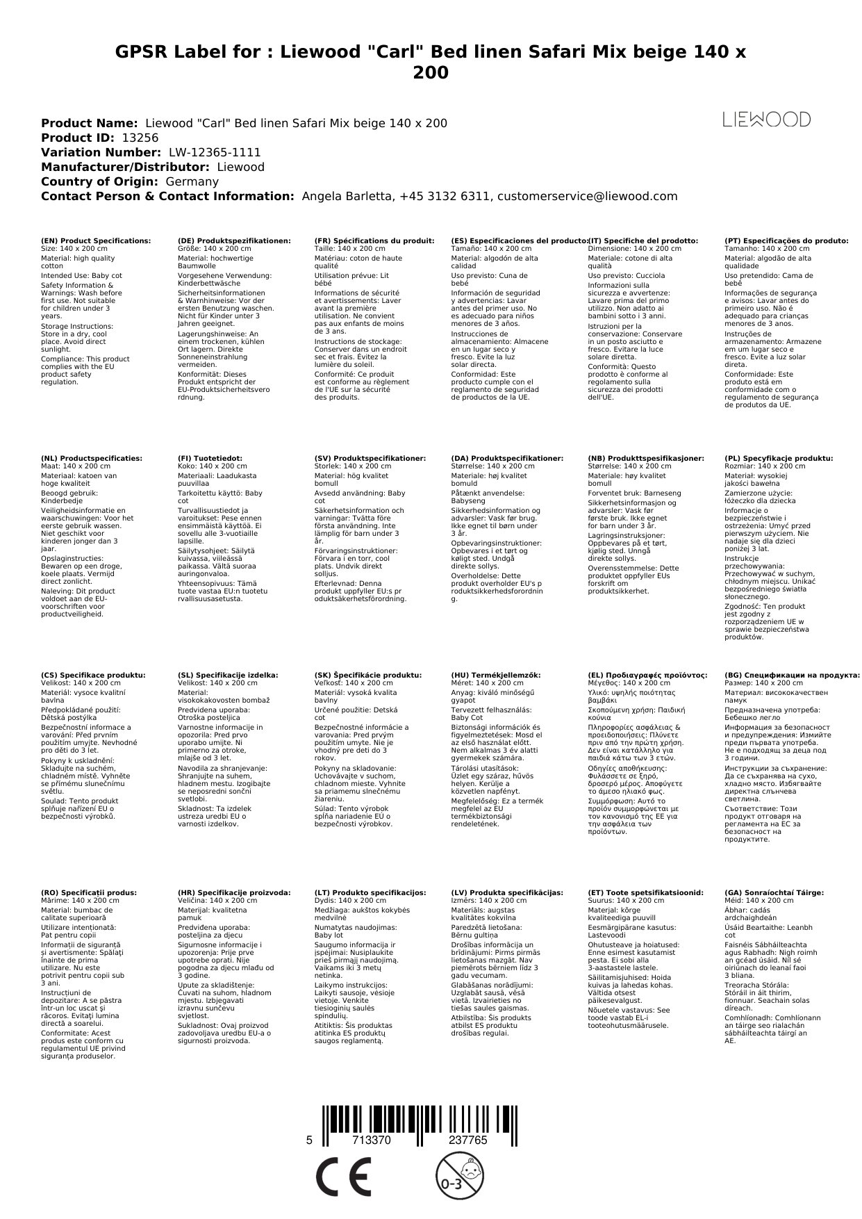 Liewood "Carl" Bettwäsche Safari Mix beige 140 x 200