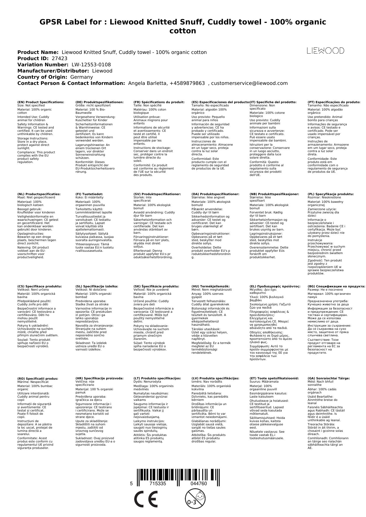 Stellen Sie eine Frage, um mehr über das Produkt zu erfahrenLiewood Strick Schnuffeltuch, Kuscheltuch