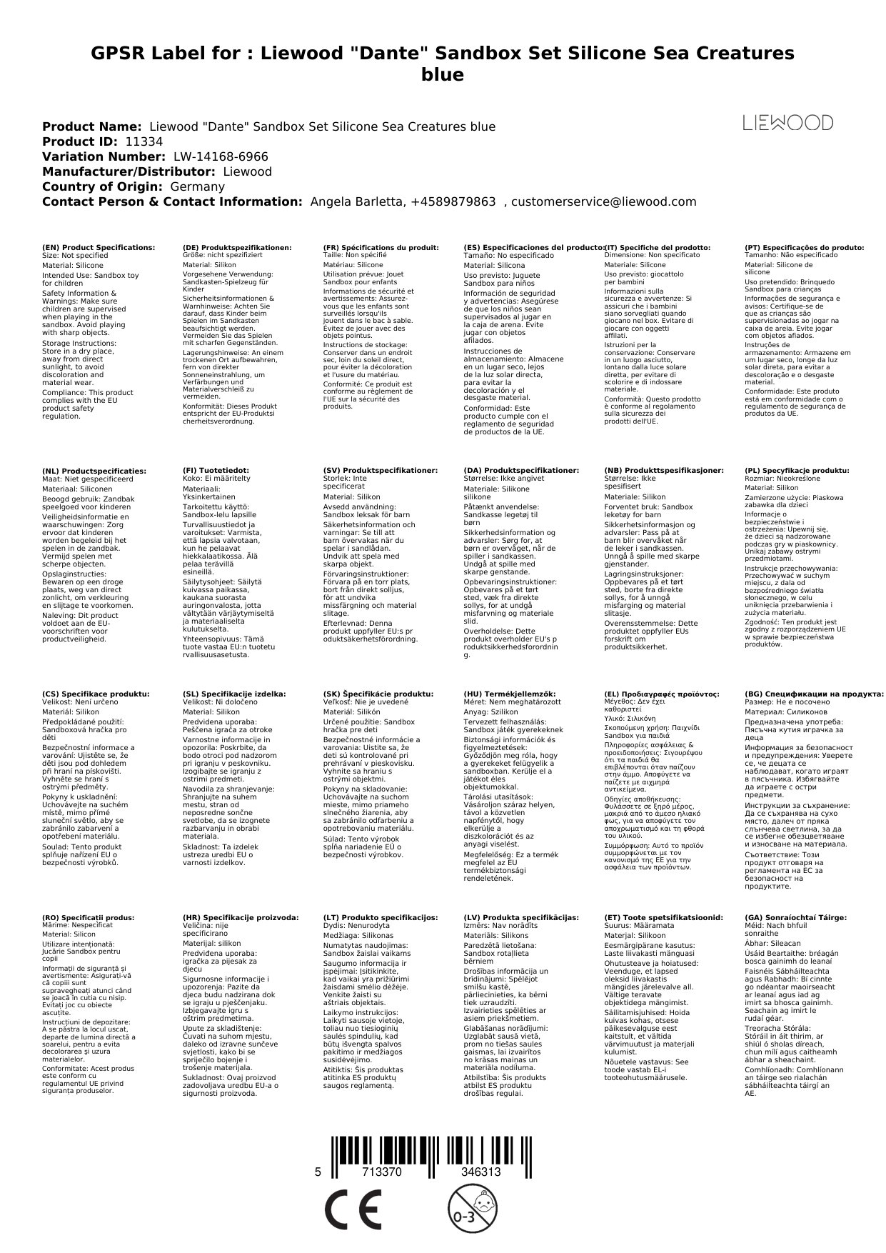 So vereint auch das Sandkasten-Set 'Dante' des dänisches Labels all diese Eigenschaften in sich und macht es zu einem echten Schmuckstück. Design und Material sind so typisch Liewood - die liebevoll gestalteten Meerestiere auf dem Eimer, dazu eine tolle Schaufel und niedliche Förmchen und das Ganze aus Silikon.