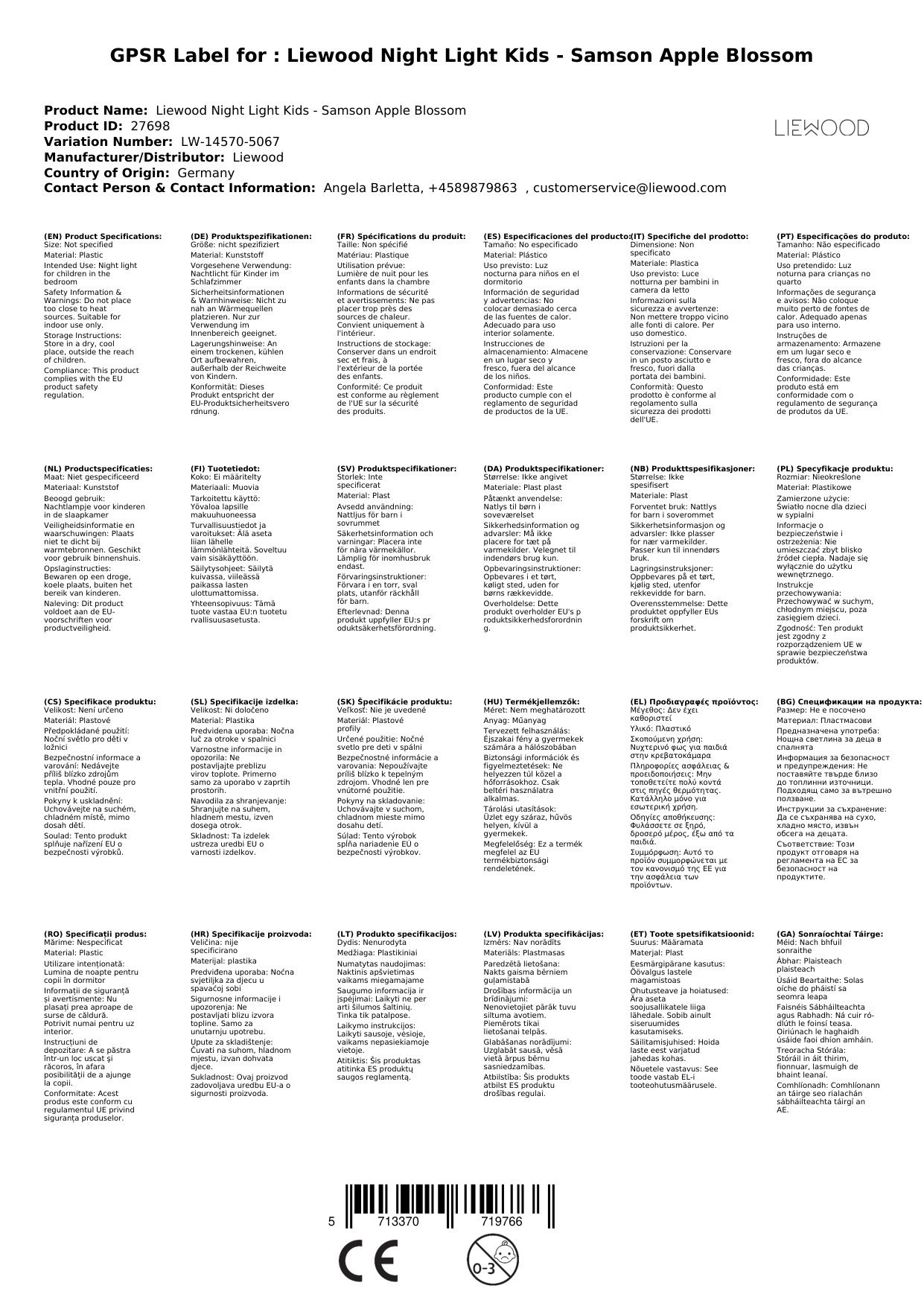 Stellen Sie eine Frage, um mehr über das Produkt zu erfahrenLiewood Nachtlicht Kinder - Samson Apple Blossom
