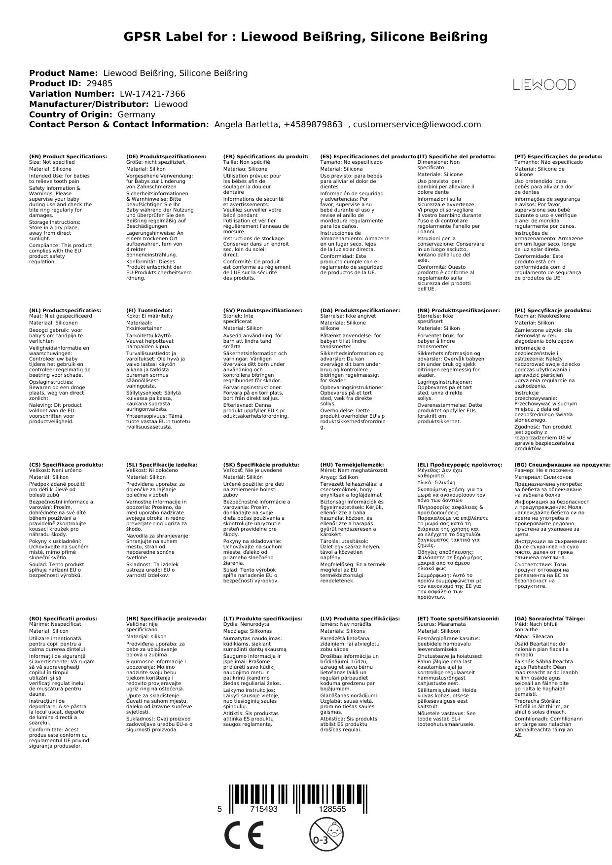 Stellen Sie eine Frage, um mehr über das Produkt zu erfahrenLiewood Beißring für Babys aus Silikon