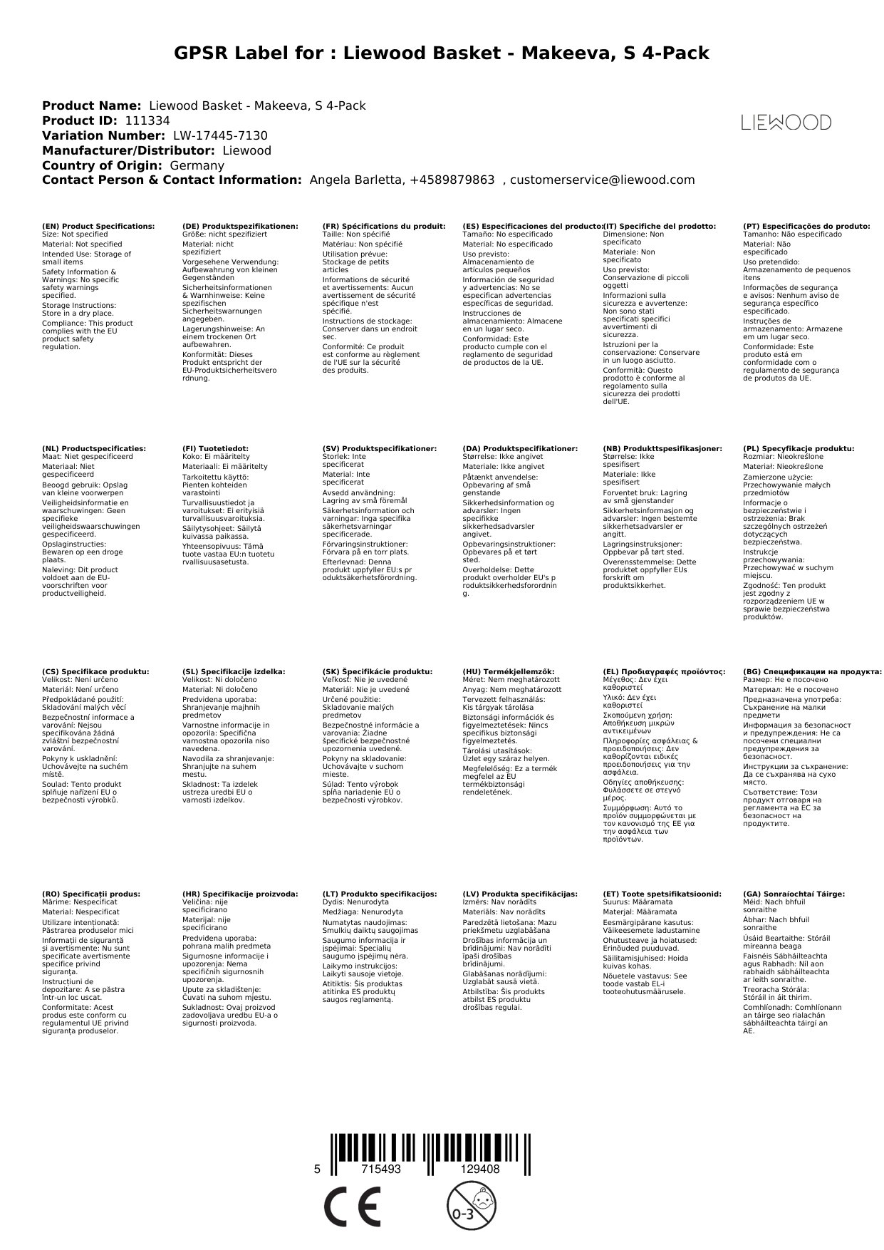 Stellen Sie eine Frage, um mehr über das Produkt zu erfahrenLiewood Korb - Makeeva, S 4-Pack: Der perfekte Aufbewahrungskorb für kleine Gegenstände