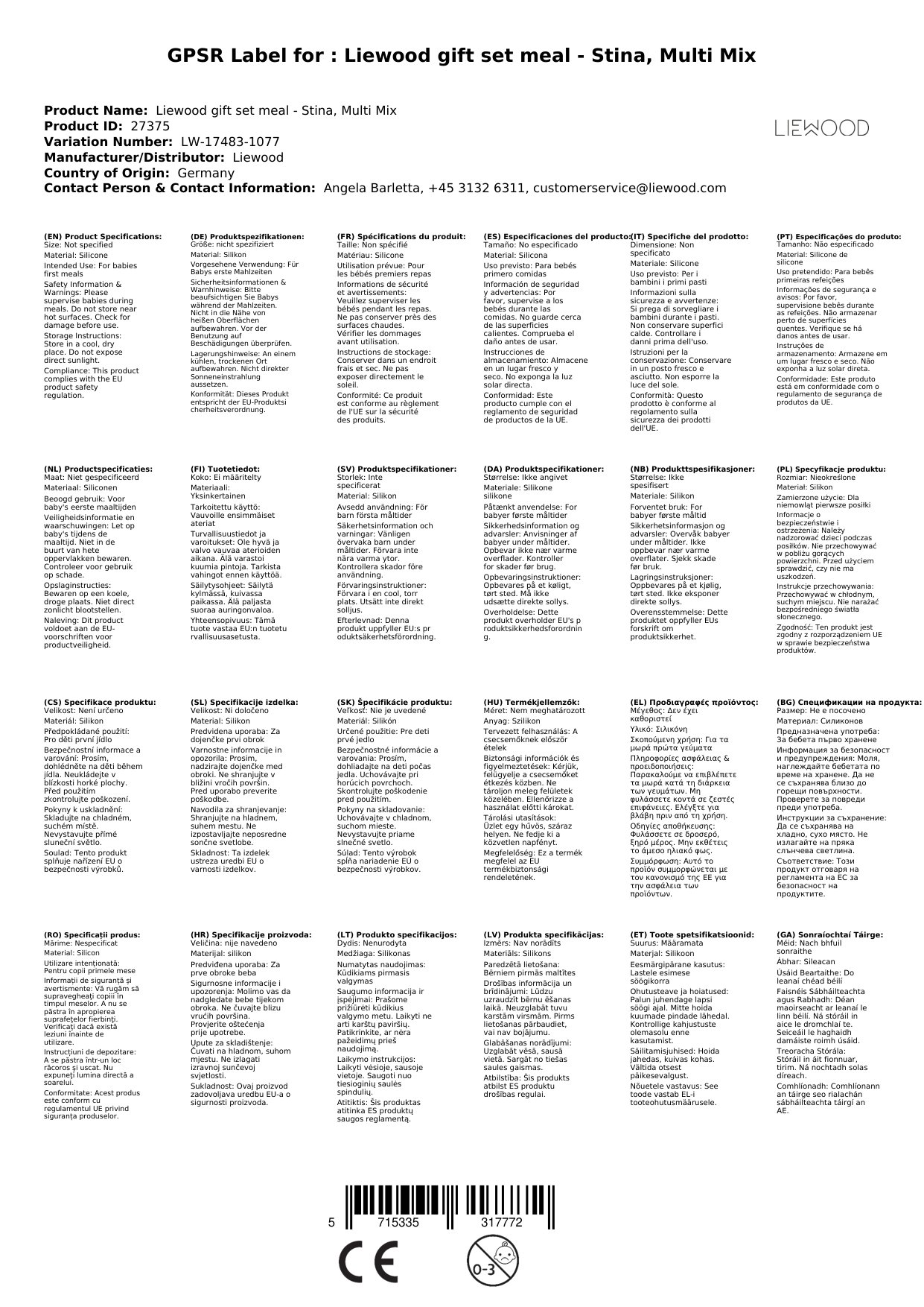 Stellen Sie eine Frage, um mehr über das Produkt zu erfahrenLiewood Geschenkset mahlzeiten - Stina, Multi Mix
