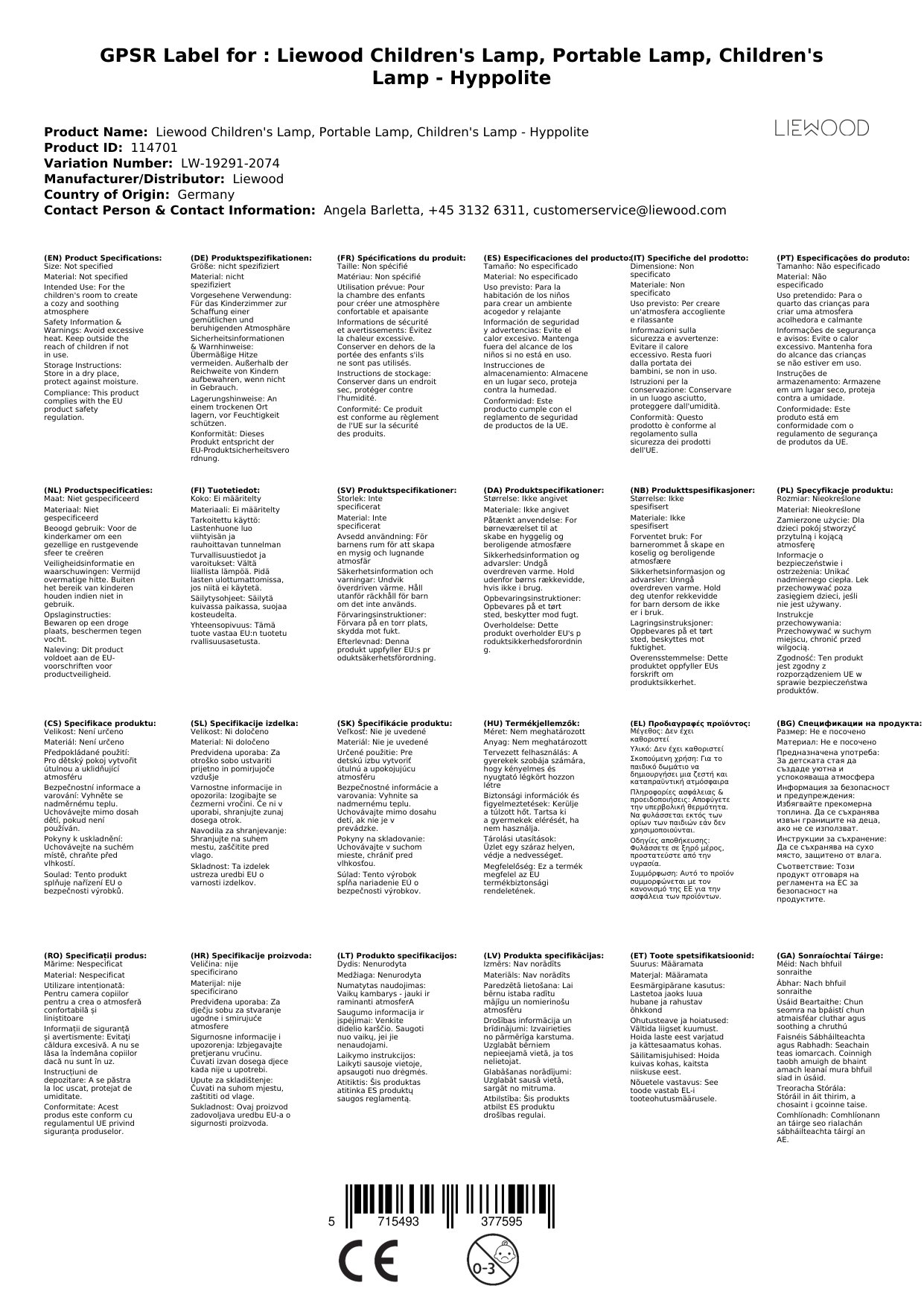 Stellen Sie eine Frage, um mehr über das Produkt zu erfahrenLiewood Kinderlampe, Tragbare Lampe, Kinderleuchte - Hyppolite