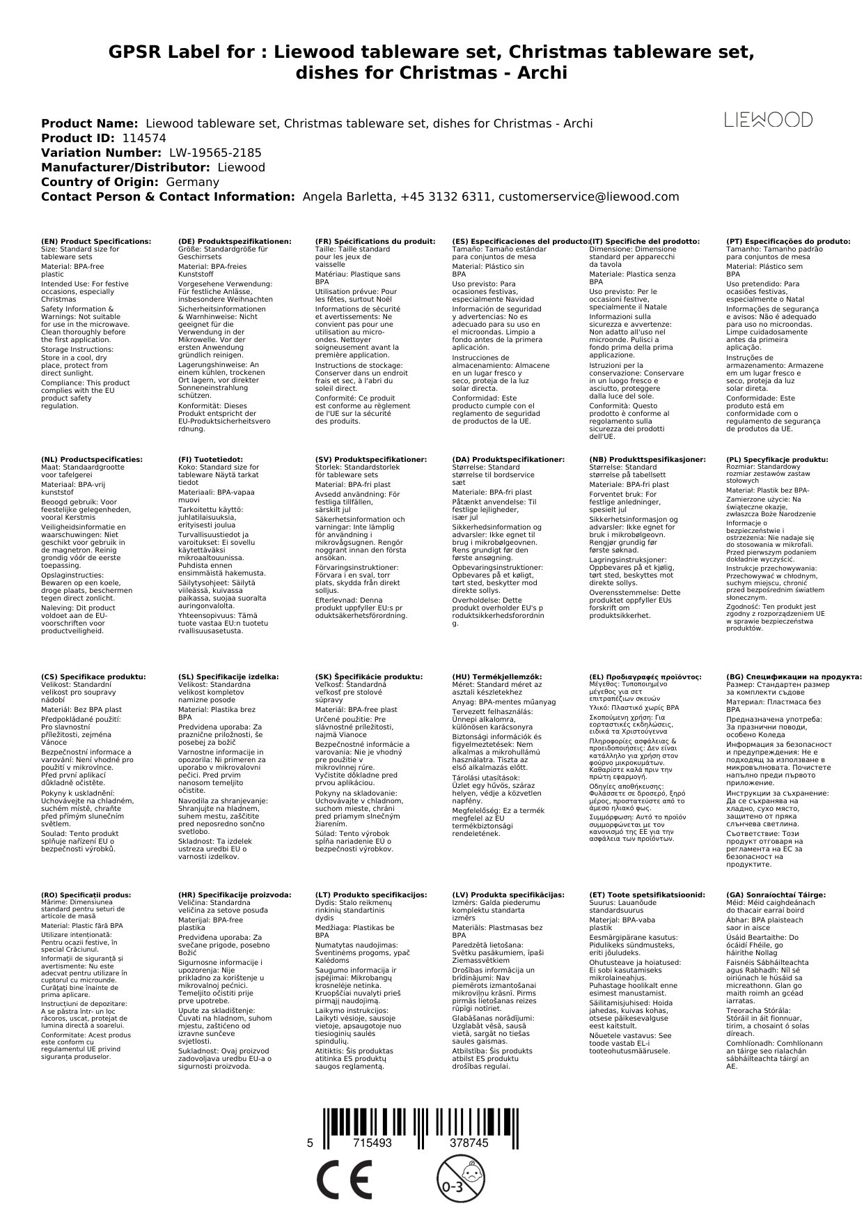 Stellen Sie eine Frage, um mehr über das Produkt zu erfahrenLiewood Geschirrset, Weihnachtsgeschirr Set, Geschirr für Weihnachten - Archi
