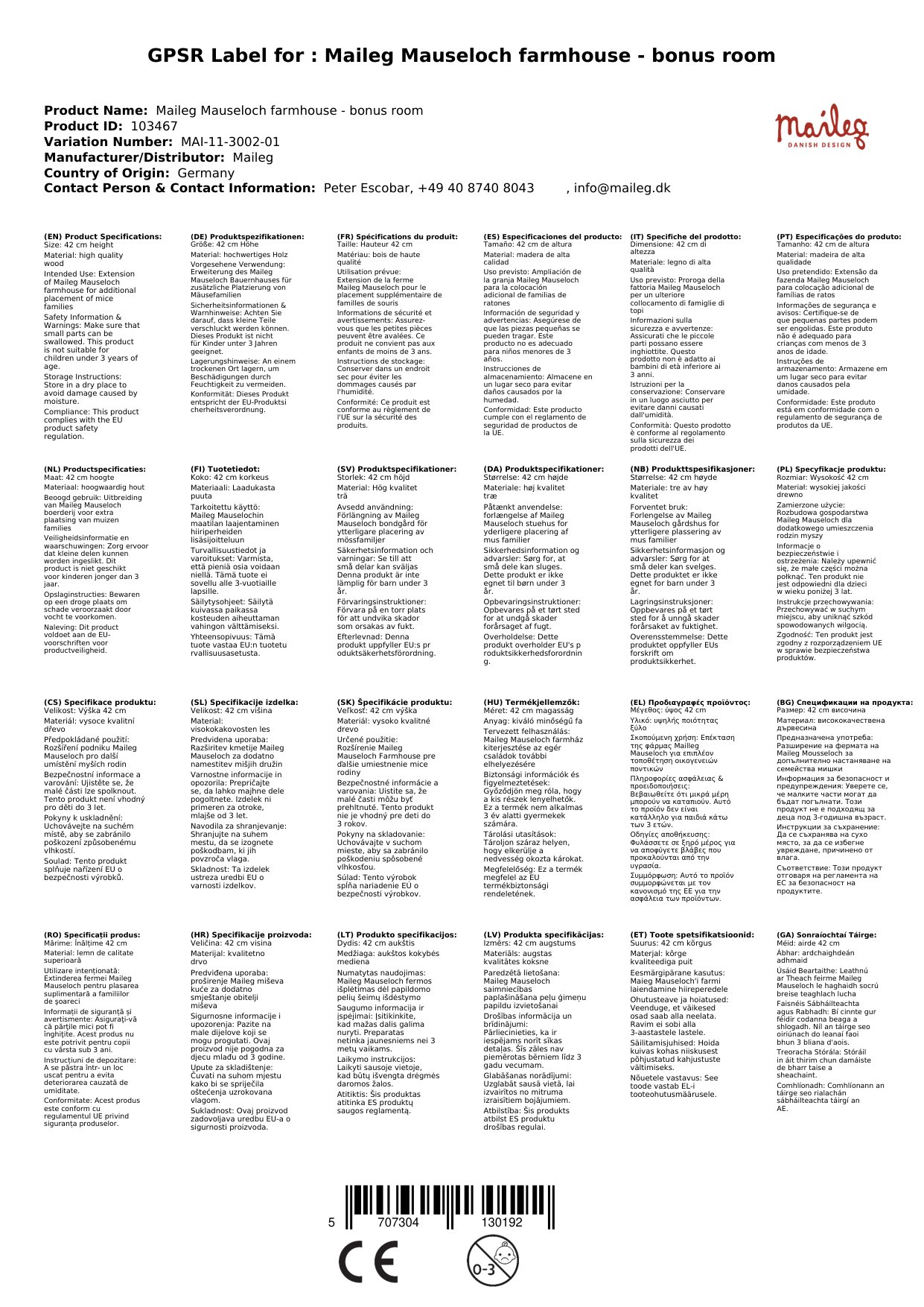 Wenn deine Mäusefamilie mehr Platz benötigt, füge diesen Bonusraum zu deinem Mauseloch Bauernhaus hinzu. Das Maileg Mauseloch Bauernhaus ist aus hochwertigem Holz gefertigt und hat eine Größe von 42cm in der Höhe, 23cm in der Breite und einer Tiefe von 20.8cm bei einem Nettogewicht von 1.5kg.