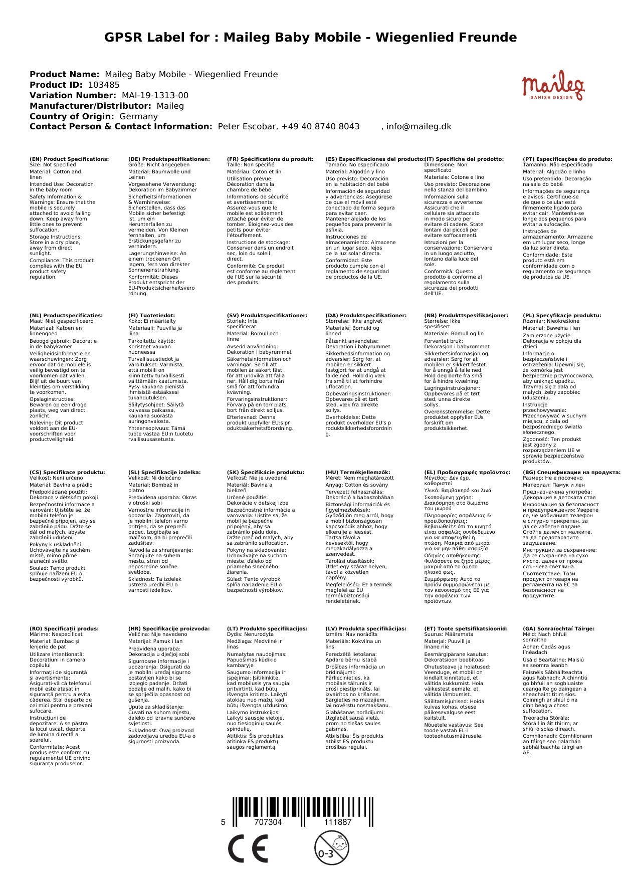 Stellen Sie eine Frage, um mehr über das Produkt zu erfahrenMaileg Baby Mobile - Wiegenlied Freunde