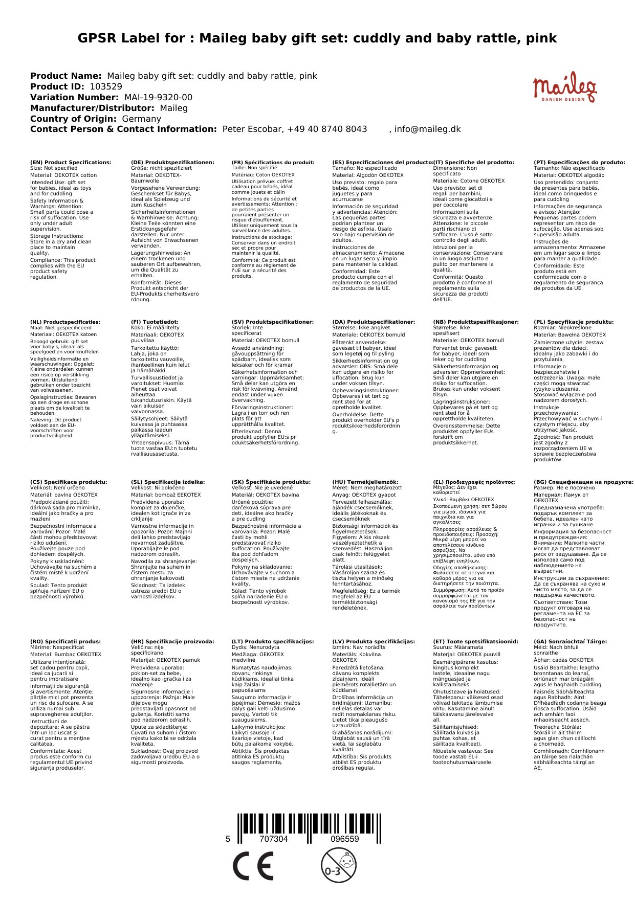 Stellen Sie eine Frage, um mehr über das Produkt zu erfahrenMaileg Baby Geschenk-Set: Kuscheltier und Babyrassel, Rosa